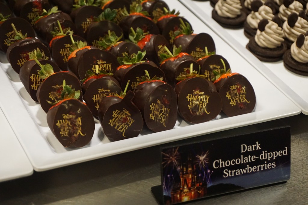 Ok, now on to the dessert party. Upon entering the area of the Tomorrowland Terrace where the dessert buffet is set up, I was greeted by a castmember and offered a glass of sparkling cider…