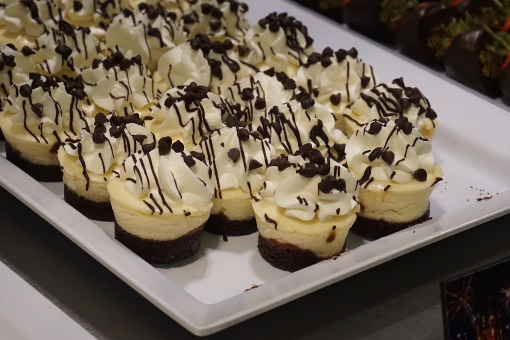 These had a chocolate brownie base topped with delicious cheesecake, whipped cream, and then both chocolate drizzle and mini chocolate chips. So yummy!