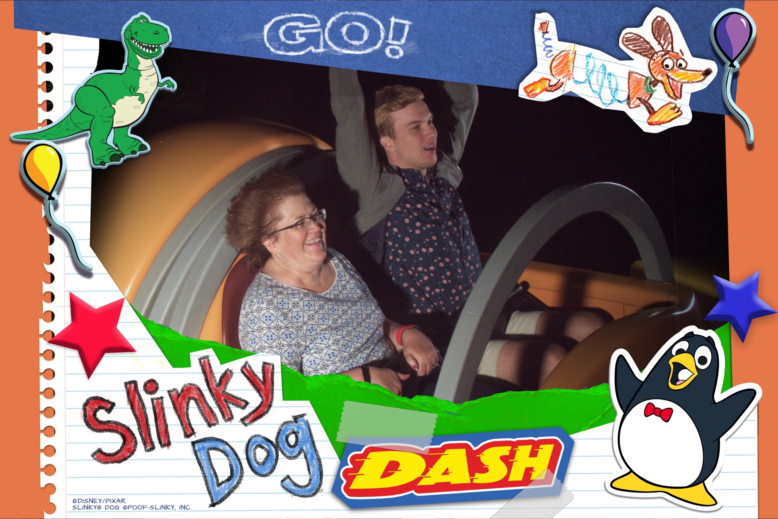 We first walked on to Slinky Dog Dash, where this photo was taken at 6:07…
