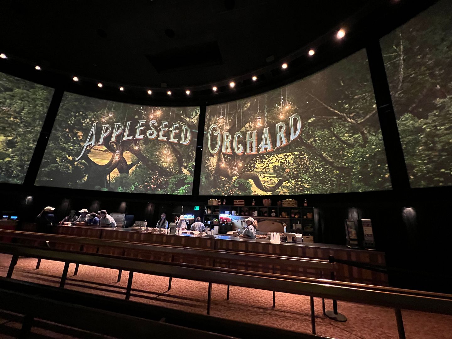 But on our way back to the Greece booth (which was located near the Japan area of World Showcase, I wanted to make a stop in Canada to check out the Appleseed Orchard booth which was set up inside the theater that normally shows the Canada Far & Wide film.
