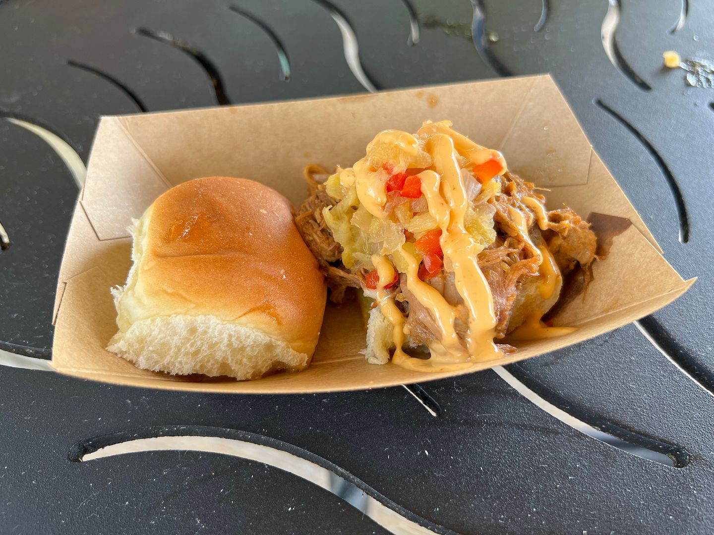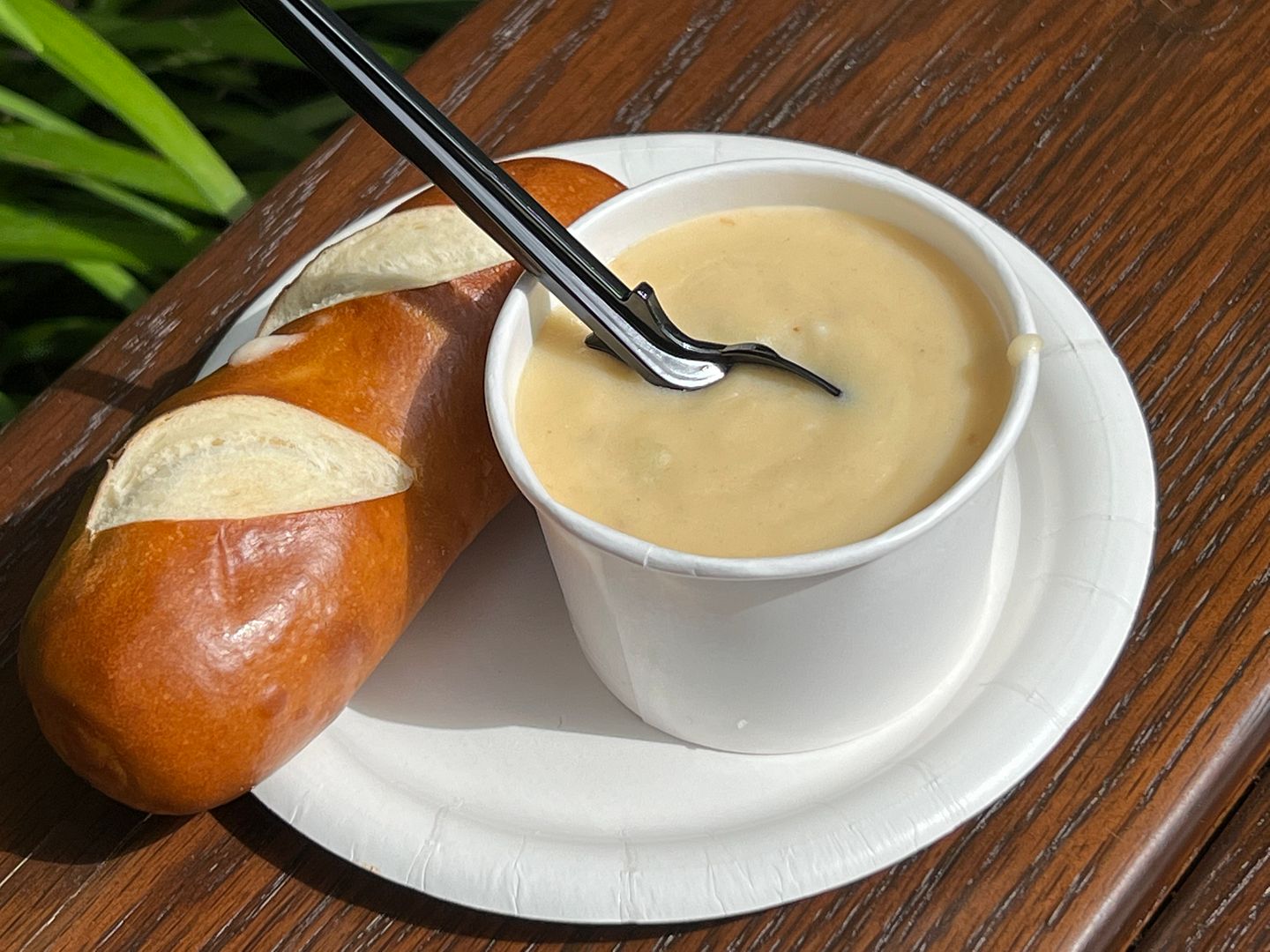 I still remember when they served this soup at the Canada booth without the pretzel roll. It was still really good then, but having the pretzel roll to dunk in the soup took this to the next level. Rating of 4 1/2.