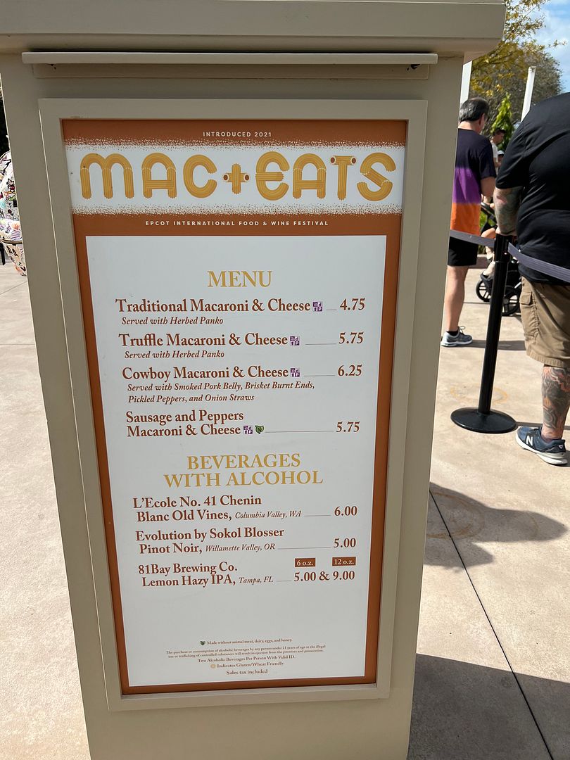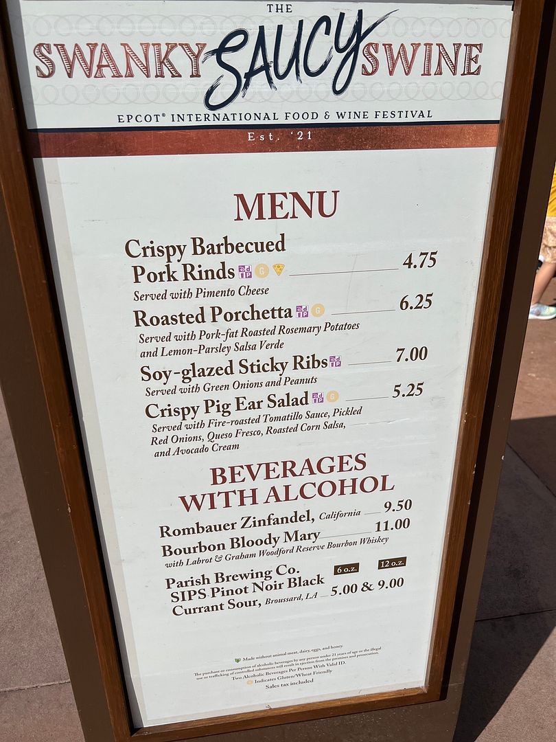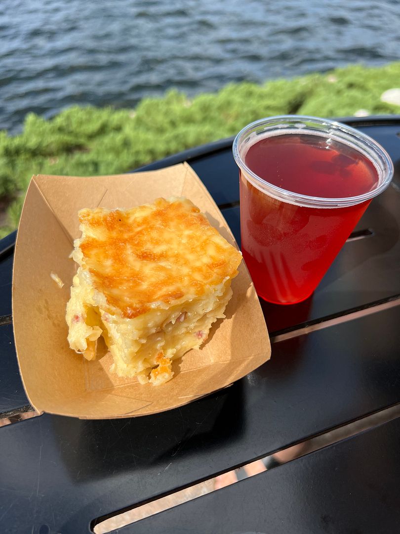 So overall we tried 16 food and beverage items during our 3 visits to the 2021 Epcot Food & Wine Festival. Our average rating for the items we tried was about 3 1/4. Our favorites were the Carrot Cake (from Hops & Barley), the Cheddar Cheese Soup & Pretzel Breadstick (from Canada) and the Strawberry Cheesecake Soft Serve (Emile Fomage Montage prize), all of which received ratings of 4 1/2. Our most disappointing items were the Guinness Baileys Shake from the Ireland booth and the Pork Rinds with Pimento Cheese from the Swanky Saucy Swine booth. Both of these items rated only a 1.