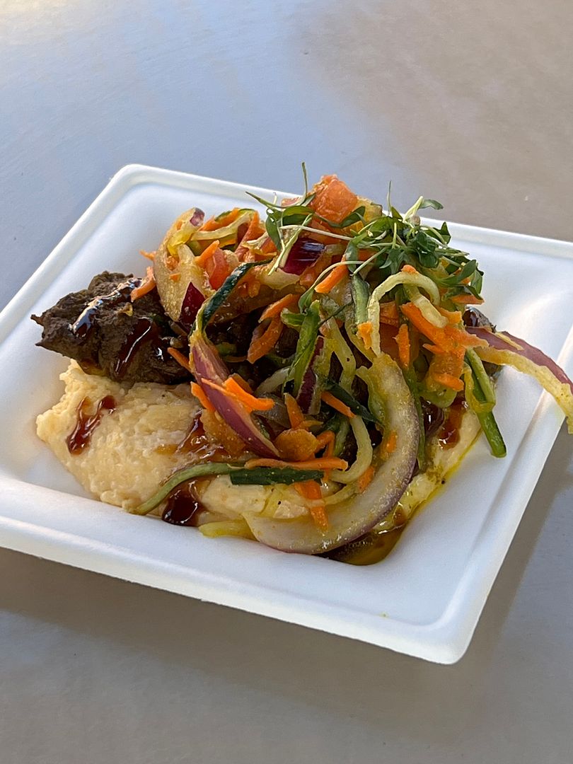 Kenyan Coffee Barbecue Beef Tenderloin with Sweet Potato & Corn Mealie Pap and Kachumbari Slaw – $6.00