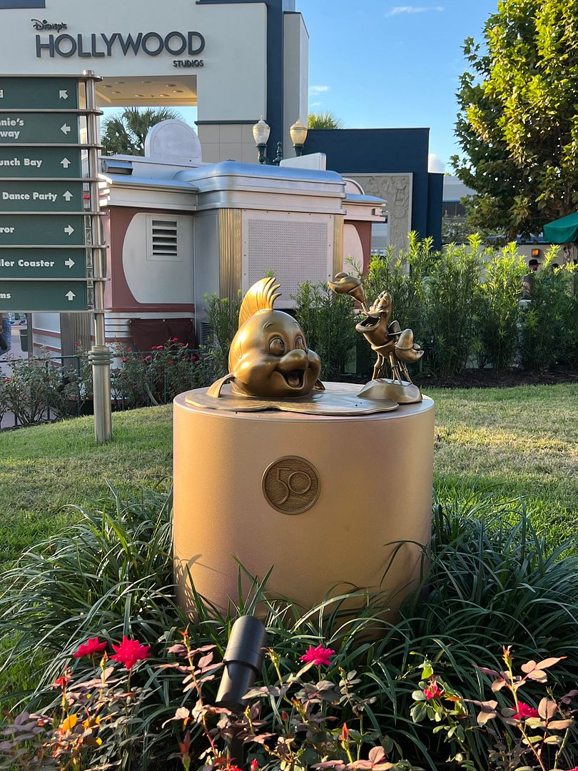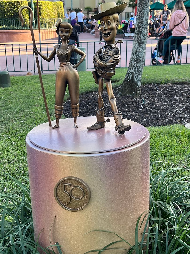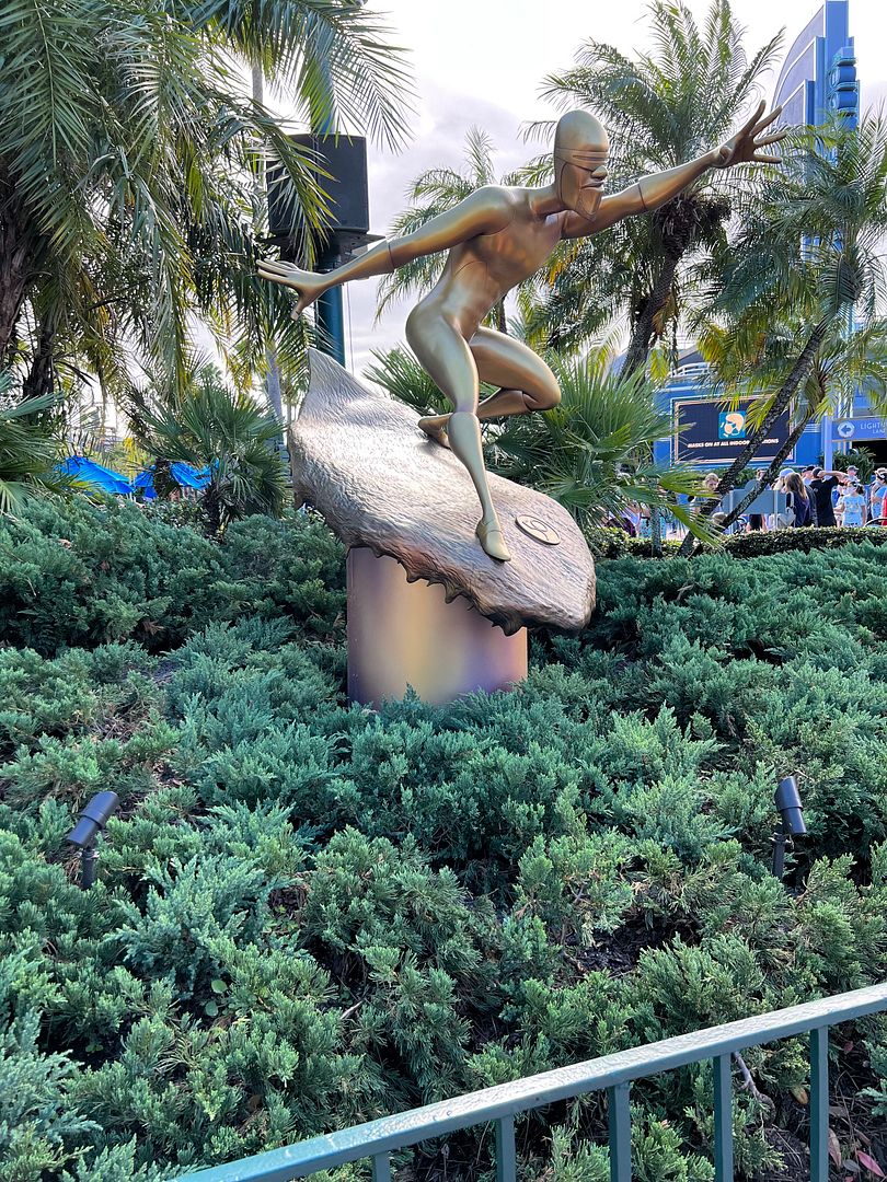 Then we checked out some of the 50th Anniversary Golden Statues at Hollywood Studios, starting with two from The Incredibles. Frozone and Edna Mode…