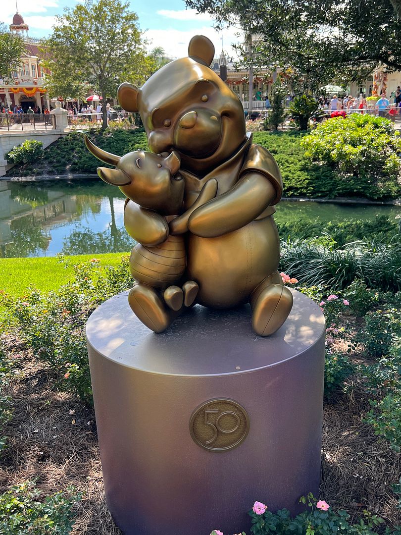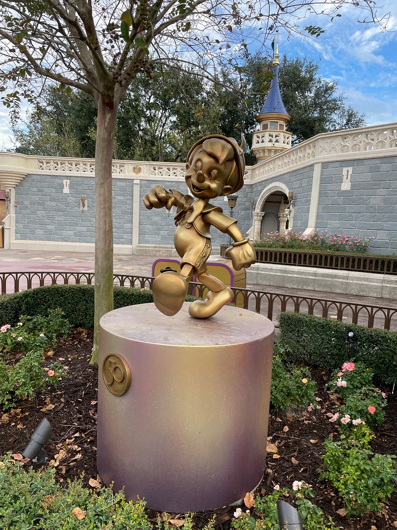 This was our final park day of this trip and we still had not found all of the 50th Anniversary Golden statues, a challenge that we had started a week ago on our first park day. All of the statues that were missing were all at Magic Kingdom. So after our brunch we left Disney Springs and went to Magic Kingdom.
