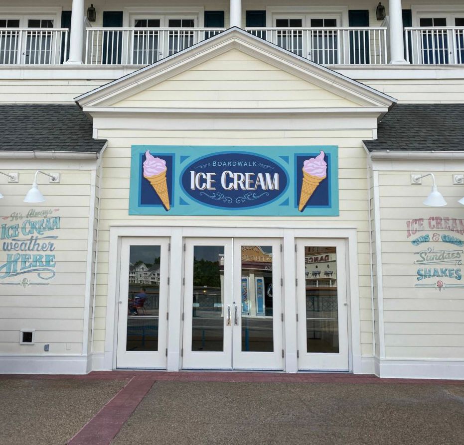 Instead of walking straight back to our resort (the Beach Club) from Hollywood Studios, we instead stopped along the Boardwalk to check out its new ice cream shop…