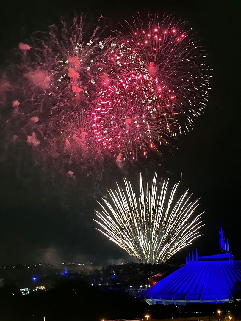 As planned, we shared our 50th Anniversary dessert while watching Enchantment, the 50th Anniversary Magic Kingdom Fireworks show, from the balcony of our Theme Park View room on the 9th floor of the Contemporary’s Main Tower. We had our own private Fireworks Dessert Party!