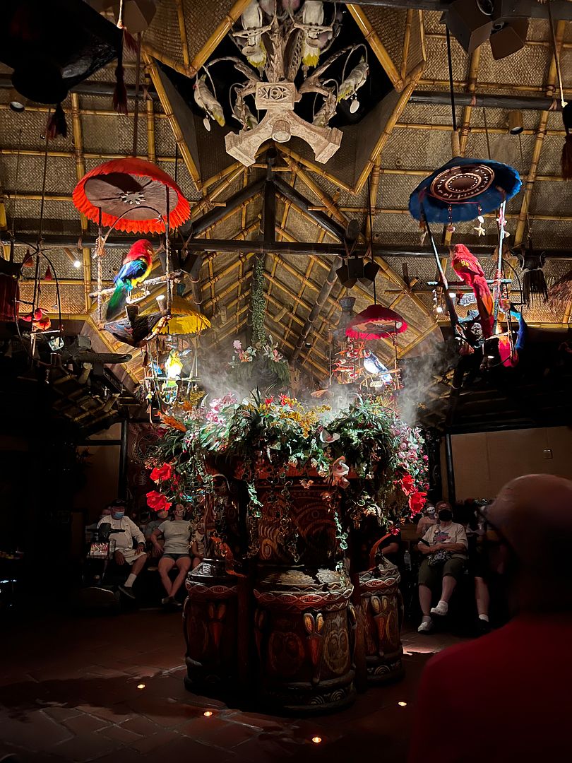 We scheduled our next Lightening Lane (through the app on our phone) for Pirates of the Caribbean but had a little time to kill before our time slot. So we visited the nearby Enchanted Tiki Room for the first time in several years…