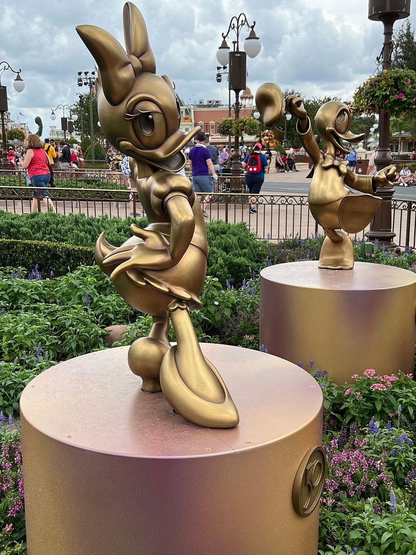 We then again had some time before the new parade (cavalcade) that we wanted to see so decided to start a contest as to which of us could spot first and photograph the most 50th Anniversary statues. On this first day of the contest I think we found 13 of the 20 that were located at Magic Kingdom. So just 7 more to find, in this park anyway, lol.