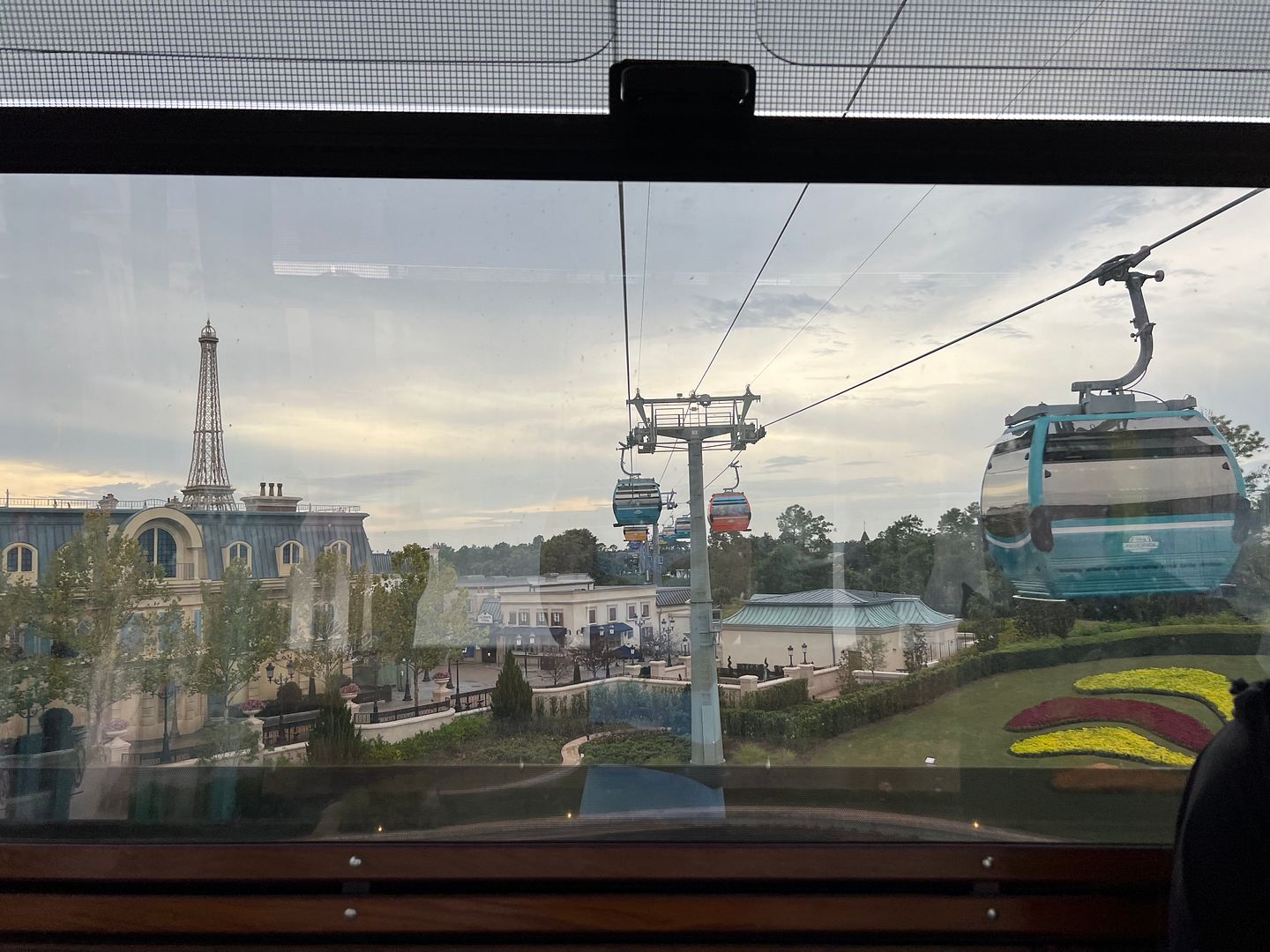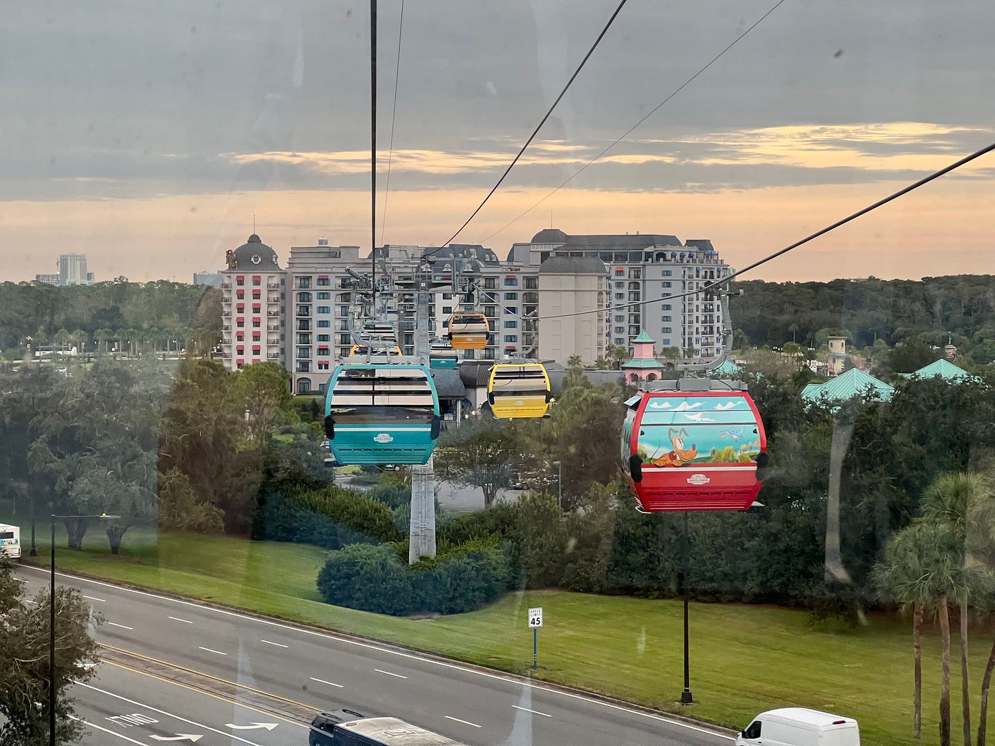 On this morning we were headed to the Riviera Resort for a 9:05 breakfast reservation at Toplino’s Terrace. To get there we walked from our resort, the Beach Club, to the Epcot Skyliner station , arriving there at 8:24 (per the time stamp on this photo)…