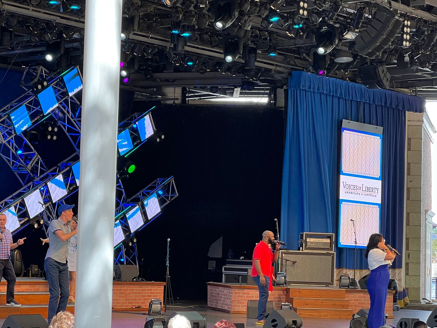 Though we didn’t quite achieve our second goal, which was to complete the Emile’s Fromage Montage, our third goal was accomplished when we caught a performance of the Voices of Liberty…