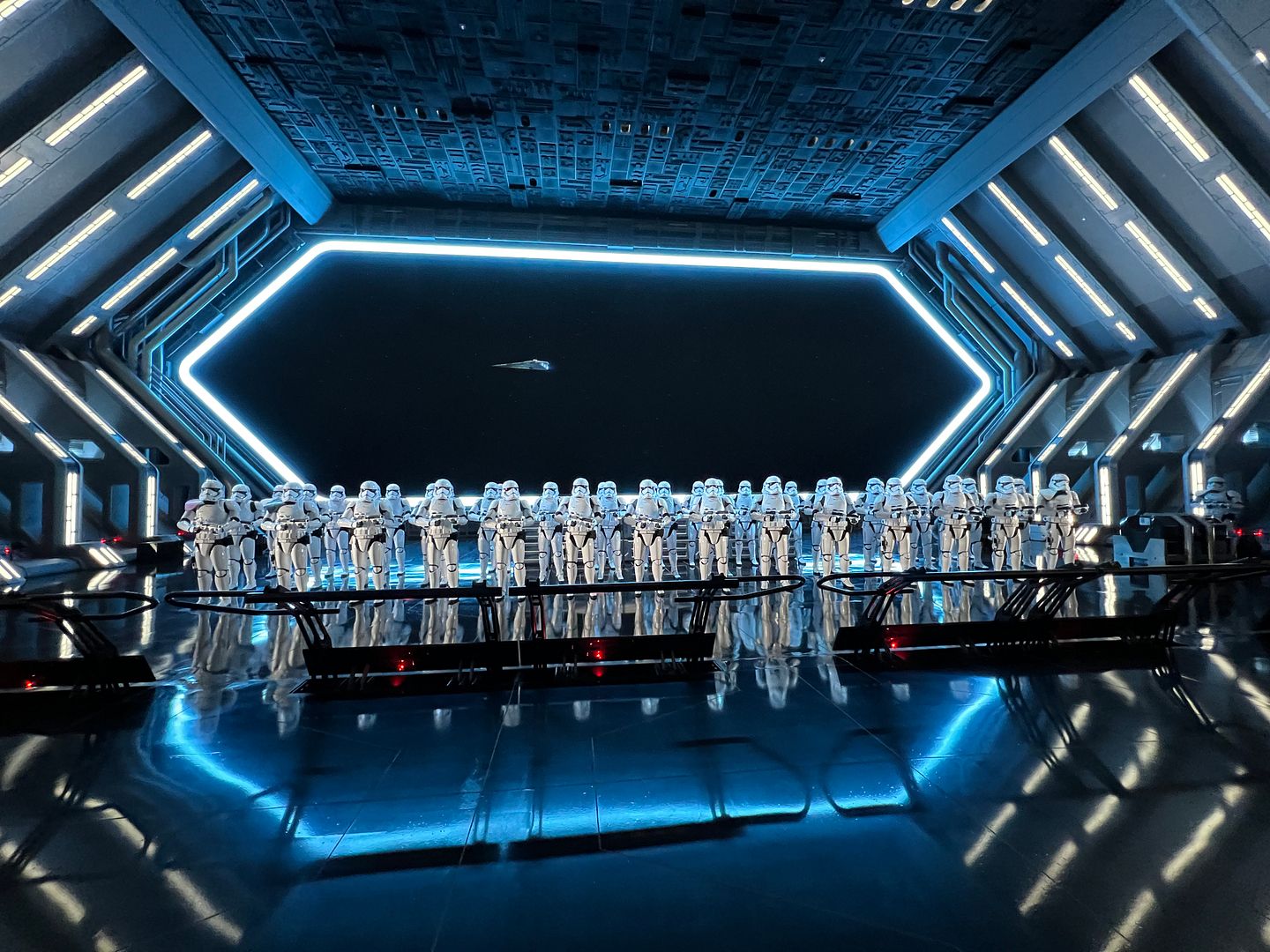 Official opening time of Hollywood Studios today was 9:00 a.m. (8:30 a.m. for Disney resort guests). However, they actually started letting resort guests in the park early that day, as evidenced by the fact that I took this photo while on the Star Wars: Rise of the Resistance ride at 8:30…