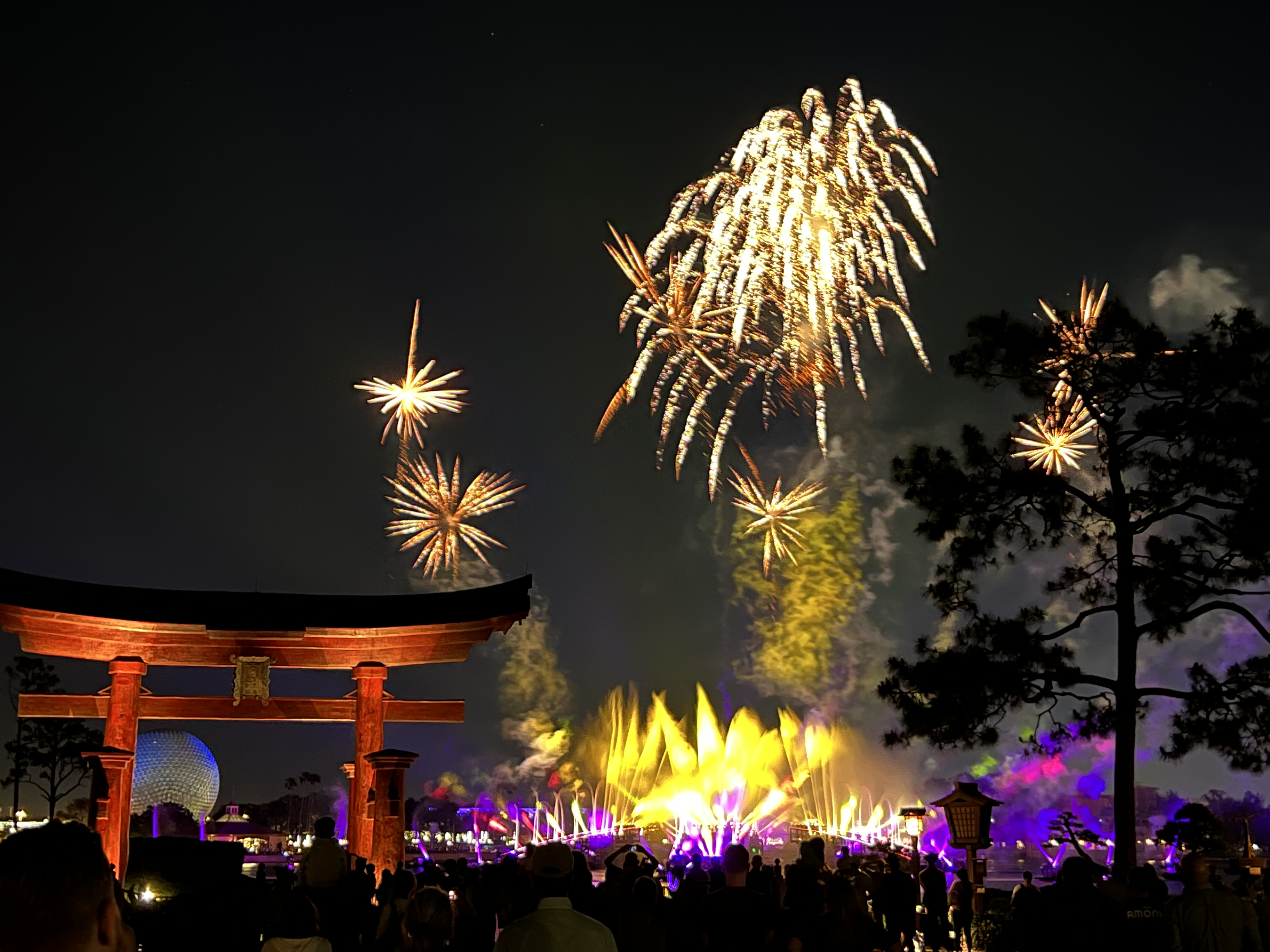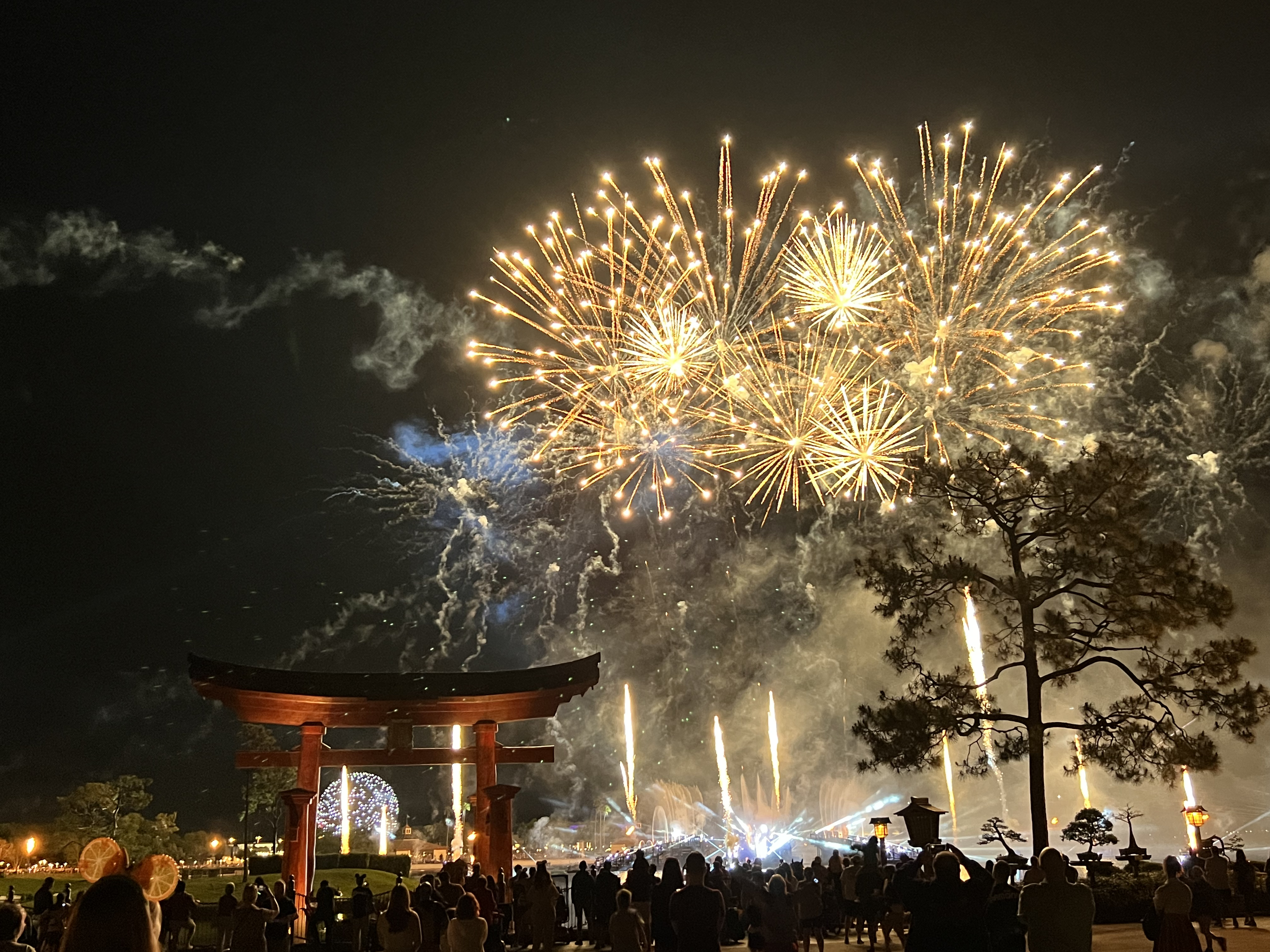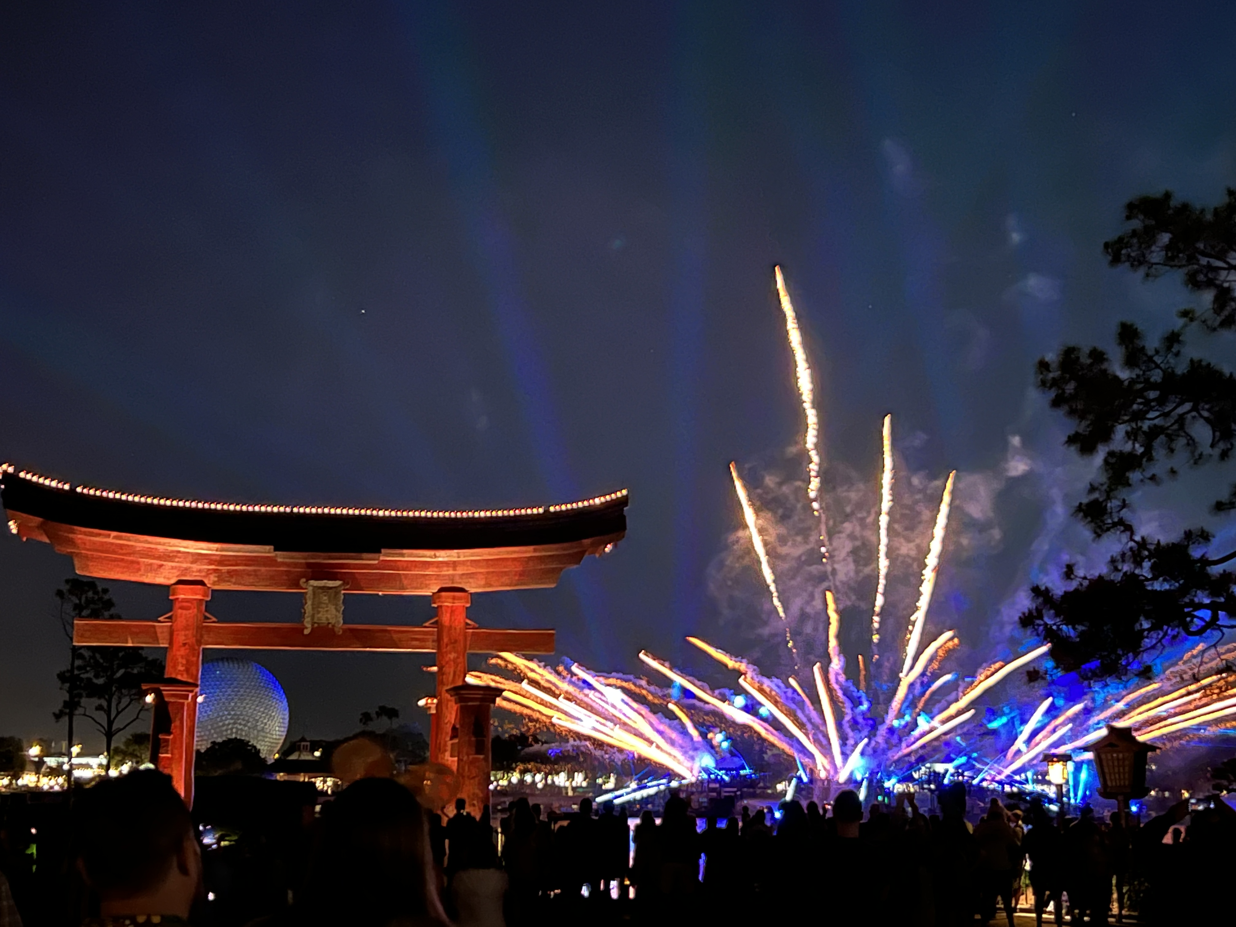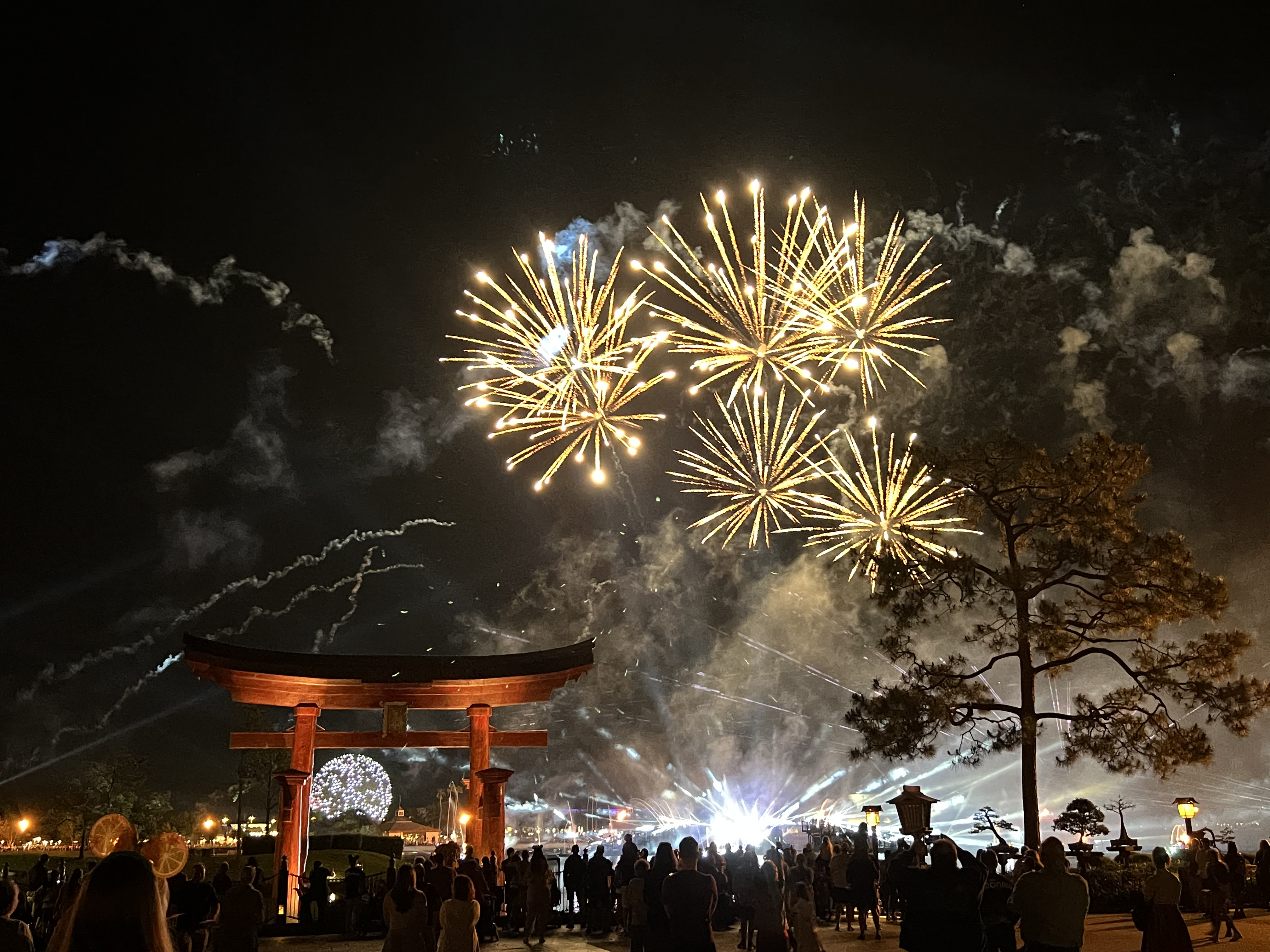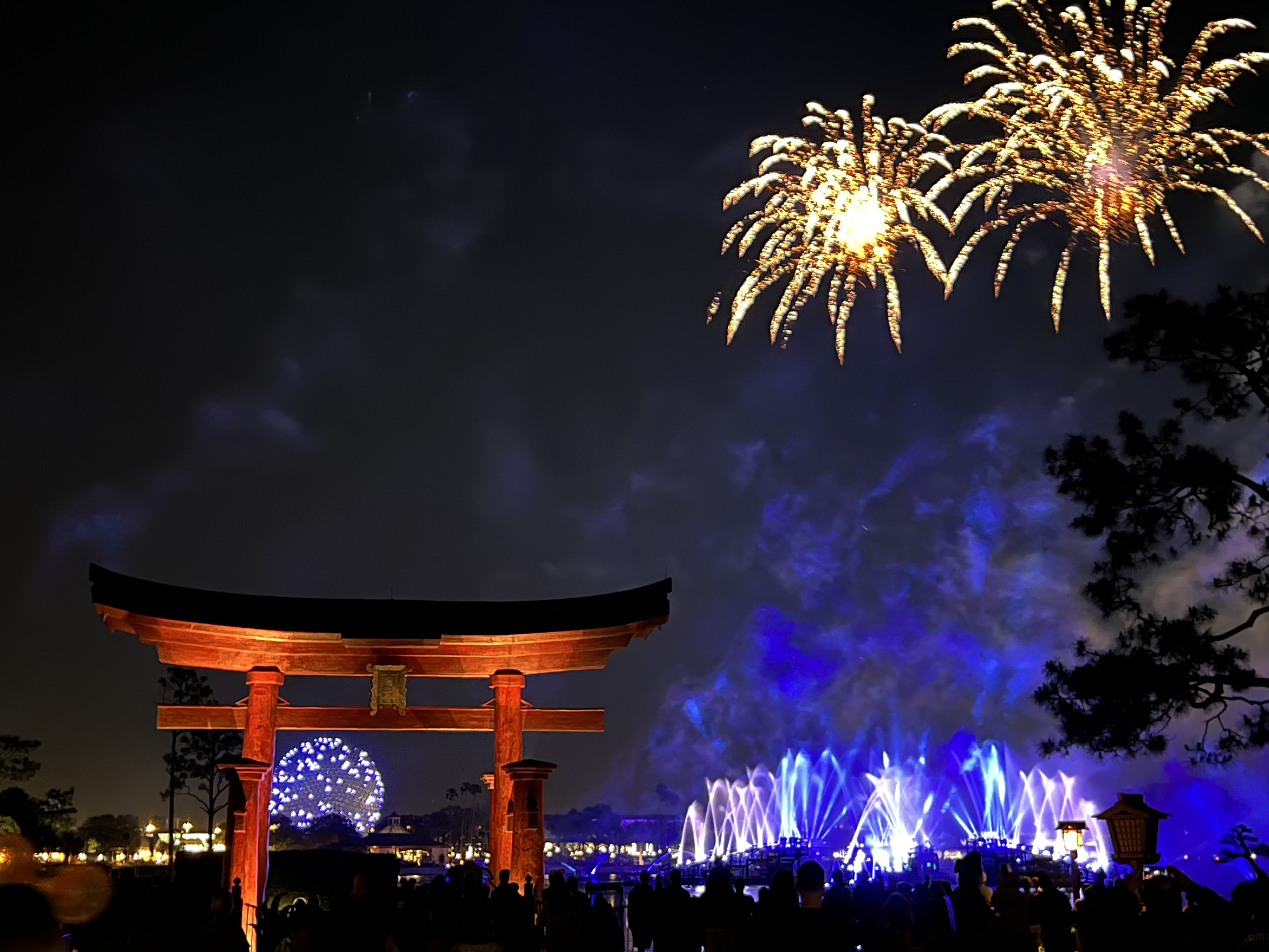After leaving Teppan Edo it was not too long before Epcot’s nighttime show, Luminous, was to begin. So most of us (minus Andrew, Jake and Becca, who were tired so headed back to our hotel) stayed in the Japan pavilion area and chatted while we waited for the show to begin at 9:00.