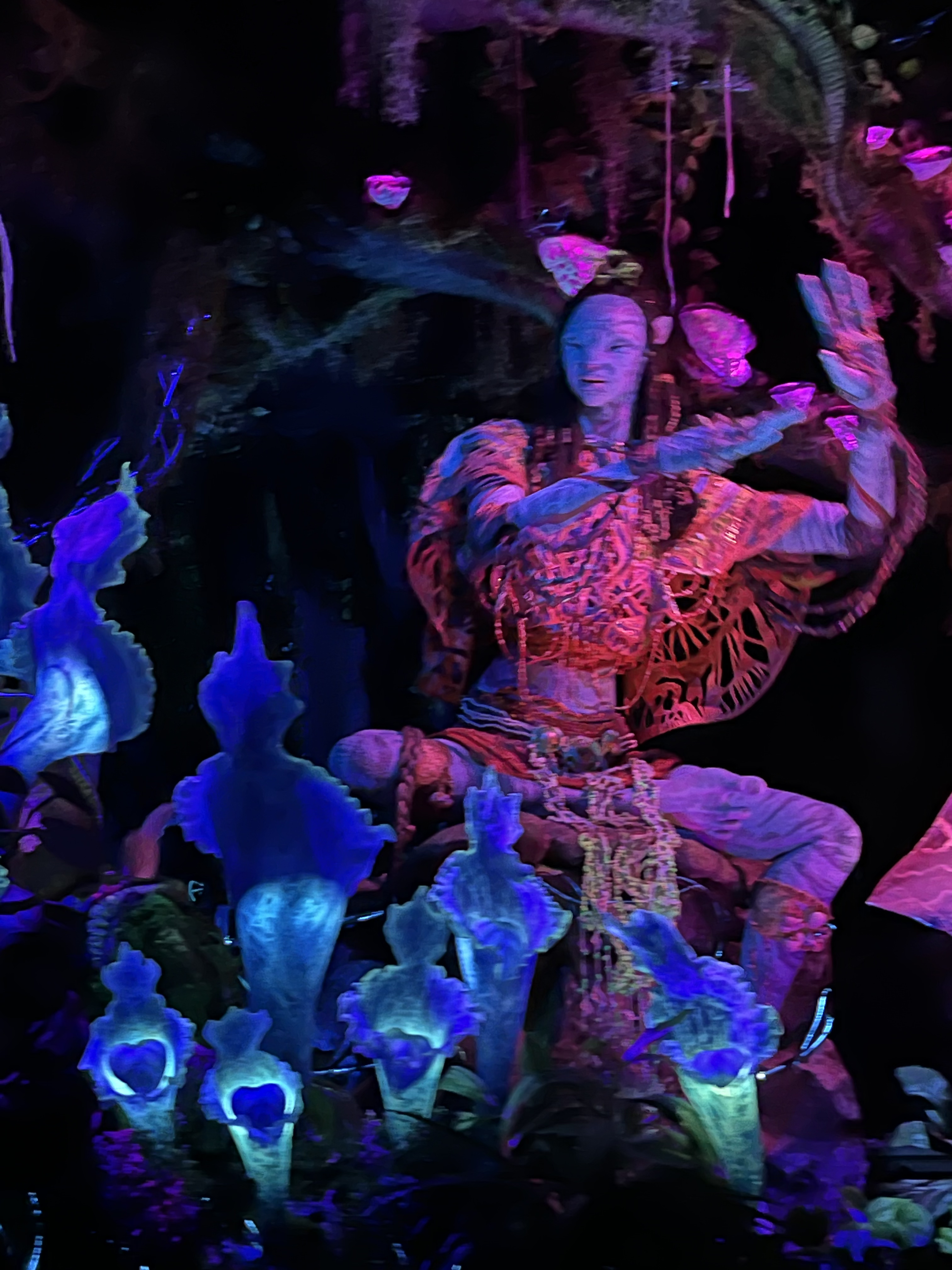 After our Avatar ride we went immediately to the Na’vi River Journey and by 8:23 we were cruising by the incredible Na’vi Shaman of Songs, the best part of this ride…