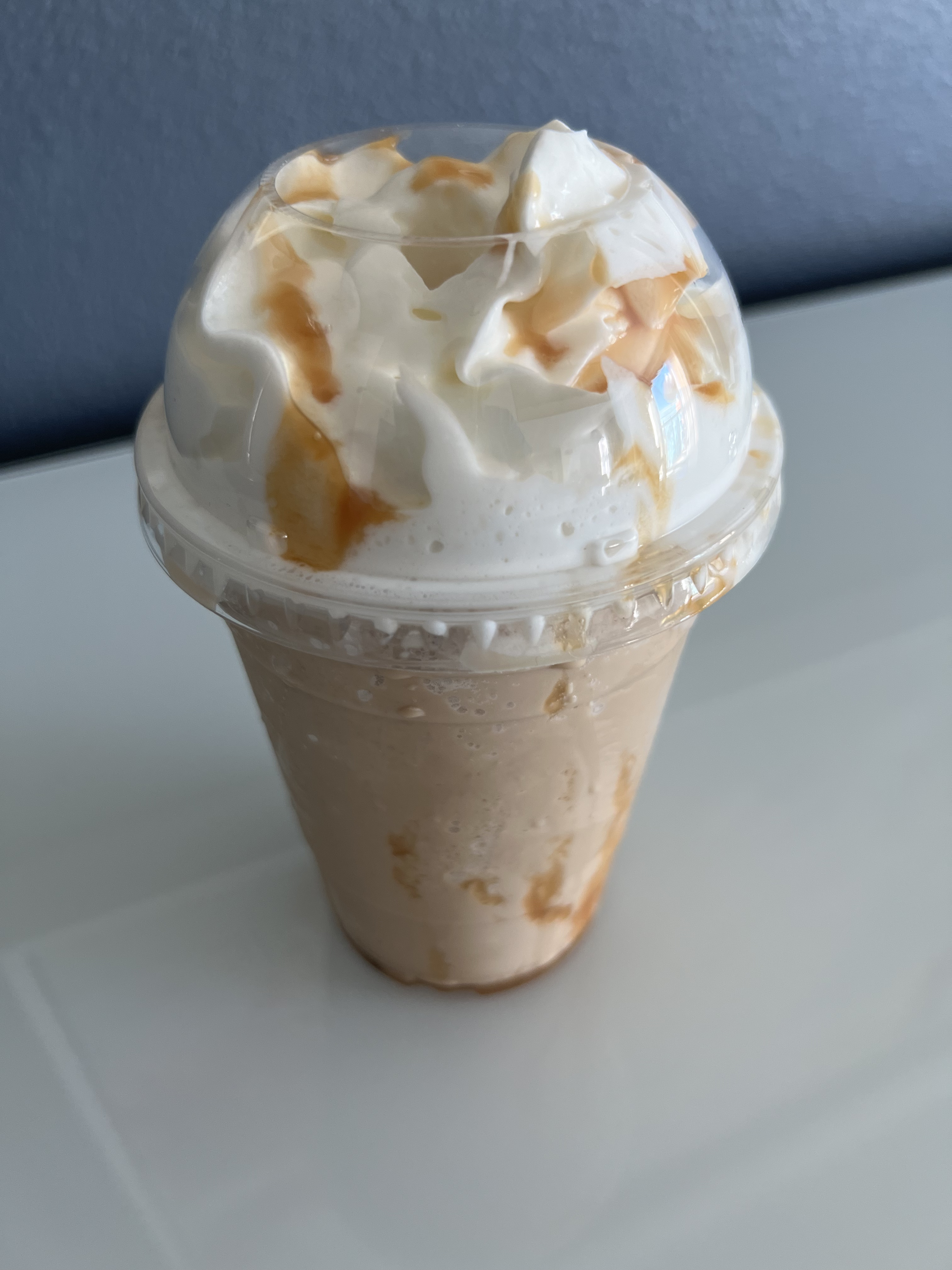 No, it wasn’t the Happy Hour alcoholic beverage I’d been hoping for but it was pretty good. It kind of reminded me of a Caramel Frappe from McDonald’s, but more expensive. It was $6.75 plus tax, whereas the same size Caramel Frappe at McD’s is only $4.69.