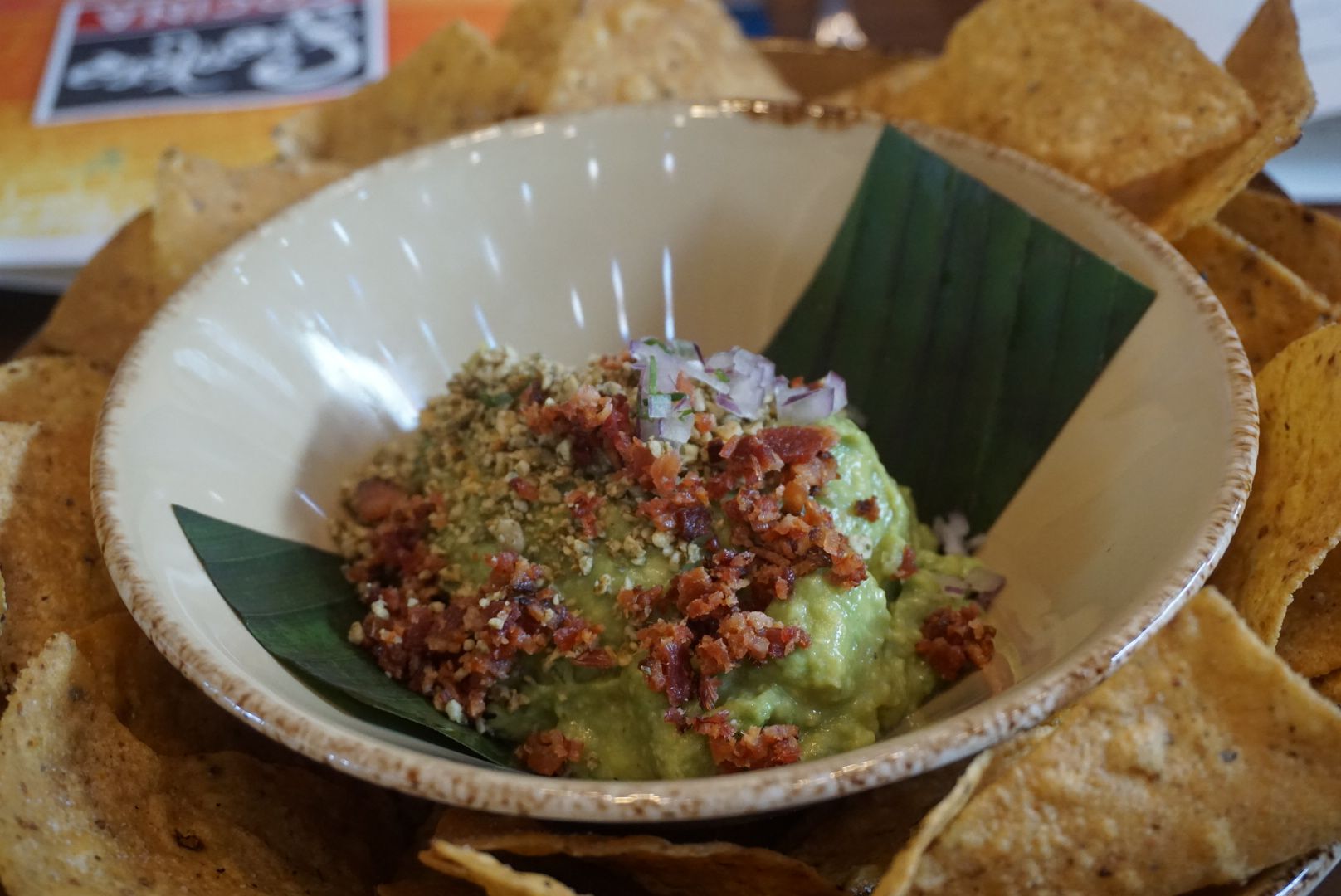 Chips & Bacon Guacamole with Nueske Bacon, Tomatillos, Toasted Pepitas, Cilantro and Onions