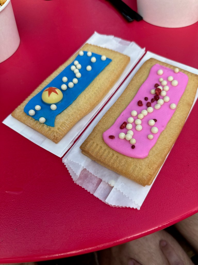 Raspberry Lunch Box Tart – Raspberry Marmalade stuffed Pastry coated in a Strawberry Fondant and Crispy Pearls (pictured on the right) – $4.79 (now $4.99 as of Dec. 2024)