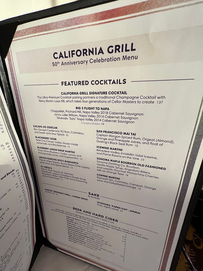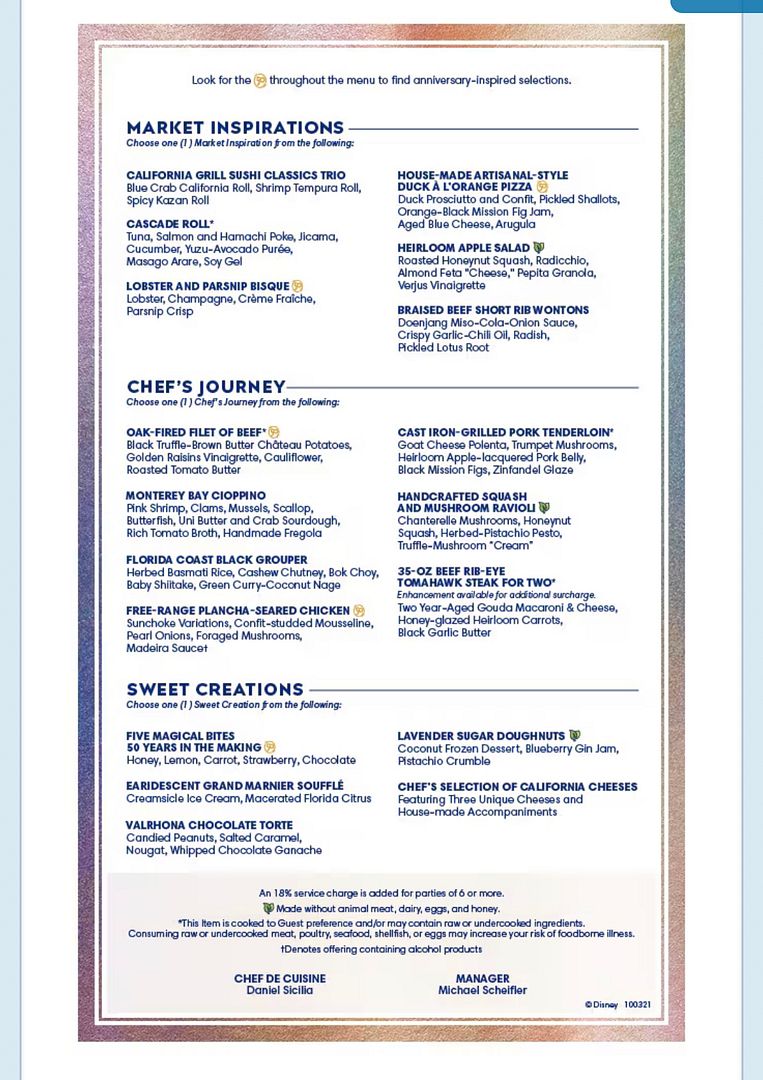 As part of “The World’s Most Magical Celebration,” California Grill will offer a limited-time three-course menu with dishes inspired by past favorites as well as new market-fresh creations. etc., etc.