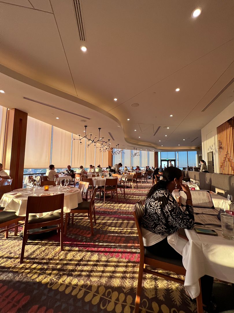 By 6:20 we had been taken upstairs in the special elevator, seated at a two-top table…