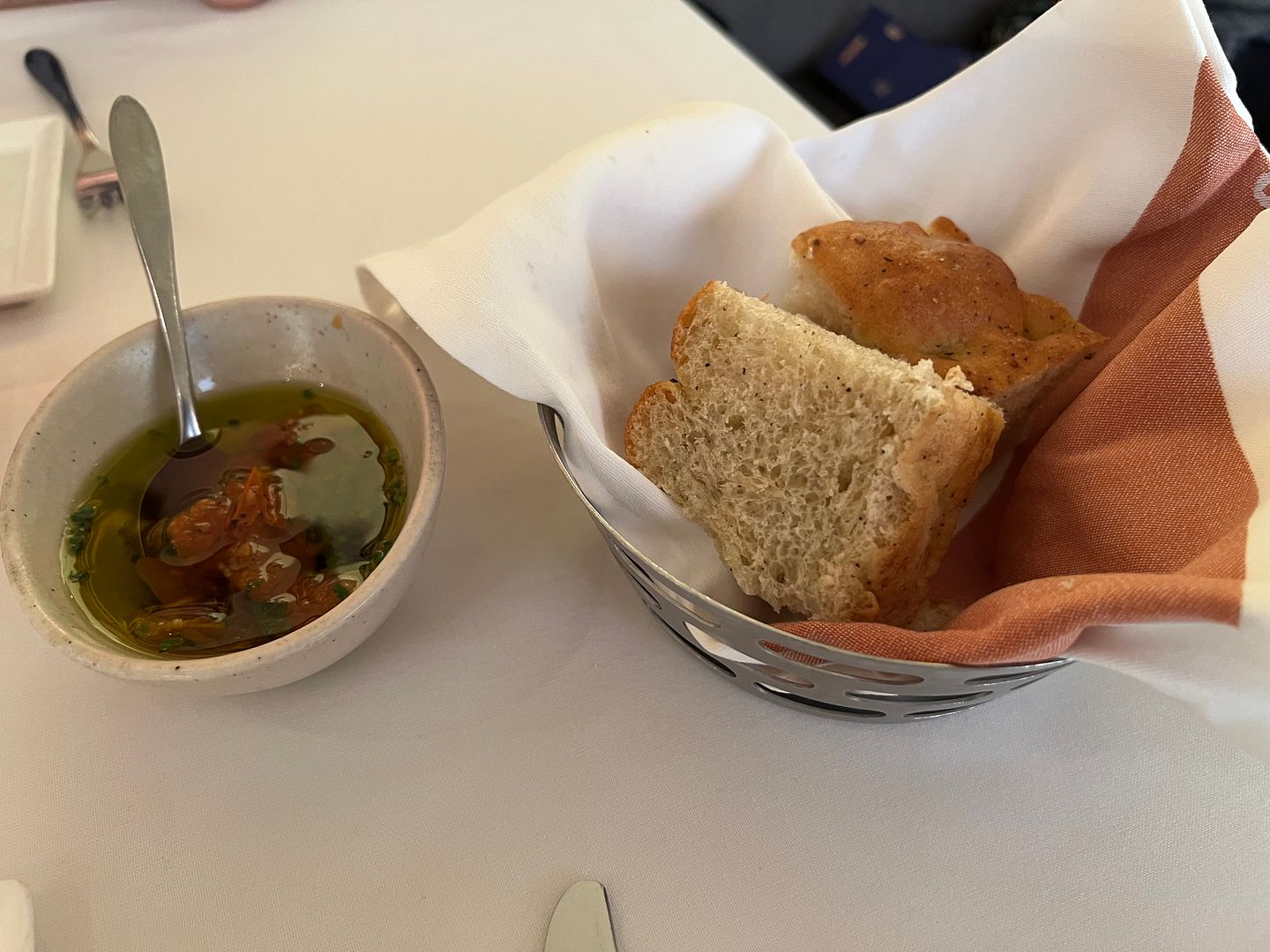Now on to the food, starting with the complimentary bread basket and their signature dipping oil…