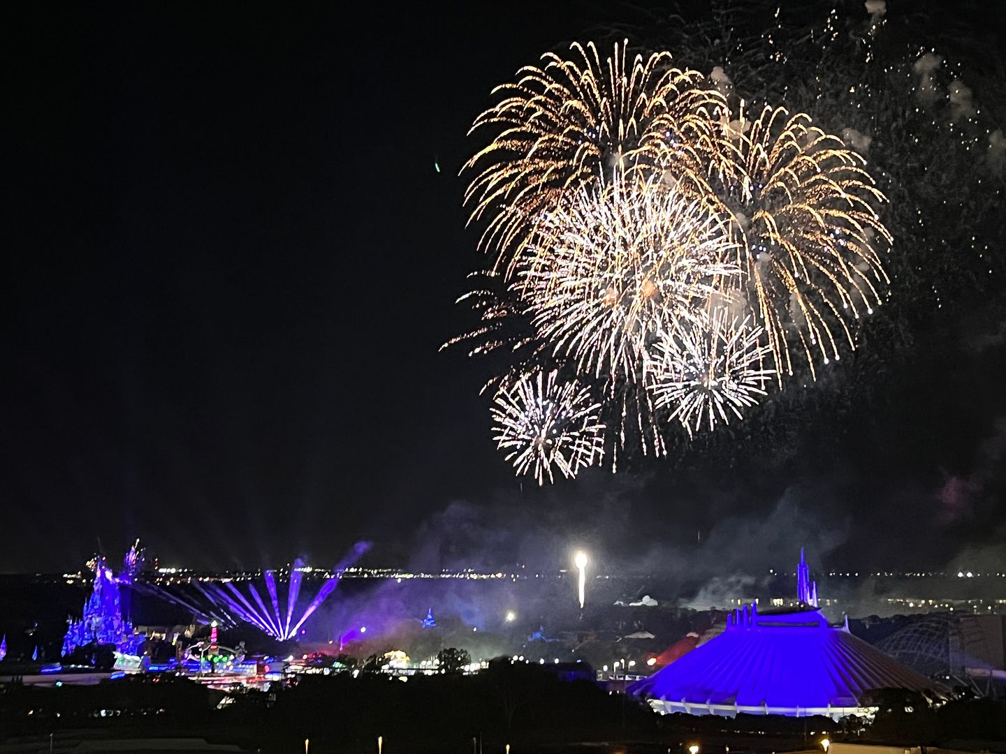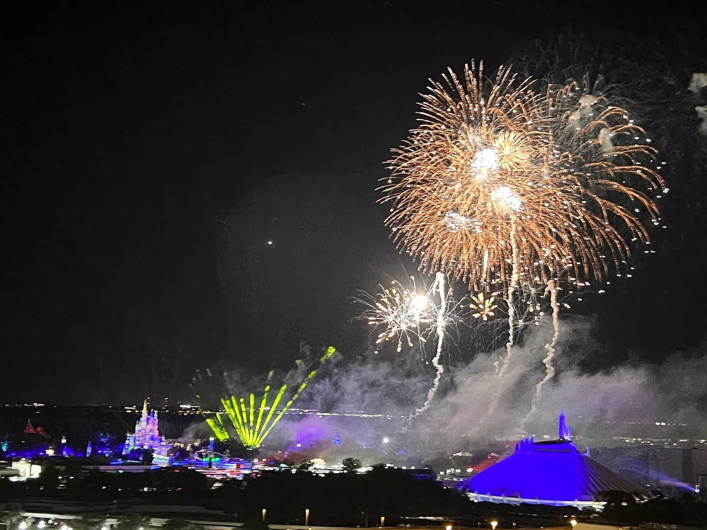 And speaking of the fireworks, before we had finished dessert, it was 8:00 and time to go out to the balcony to watch Enchantment…