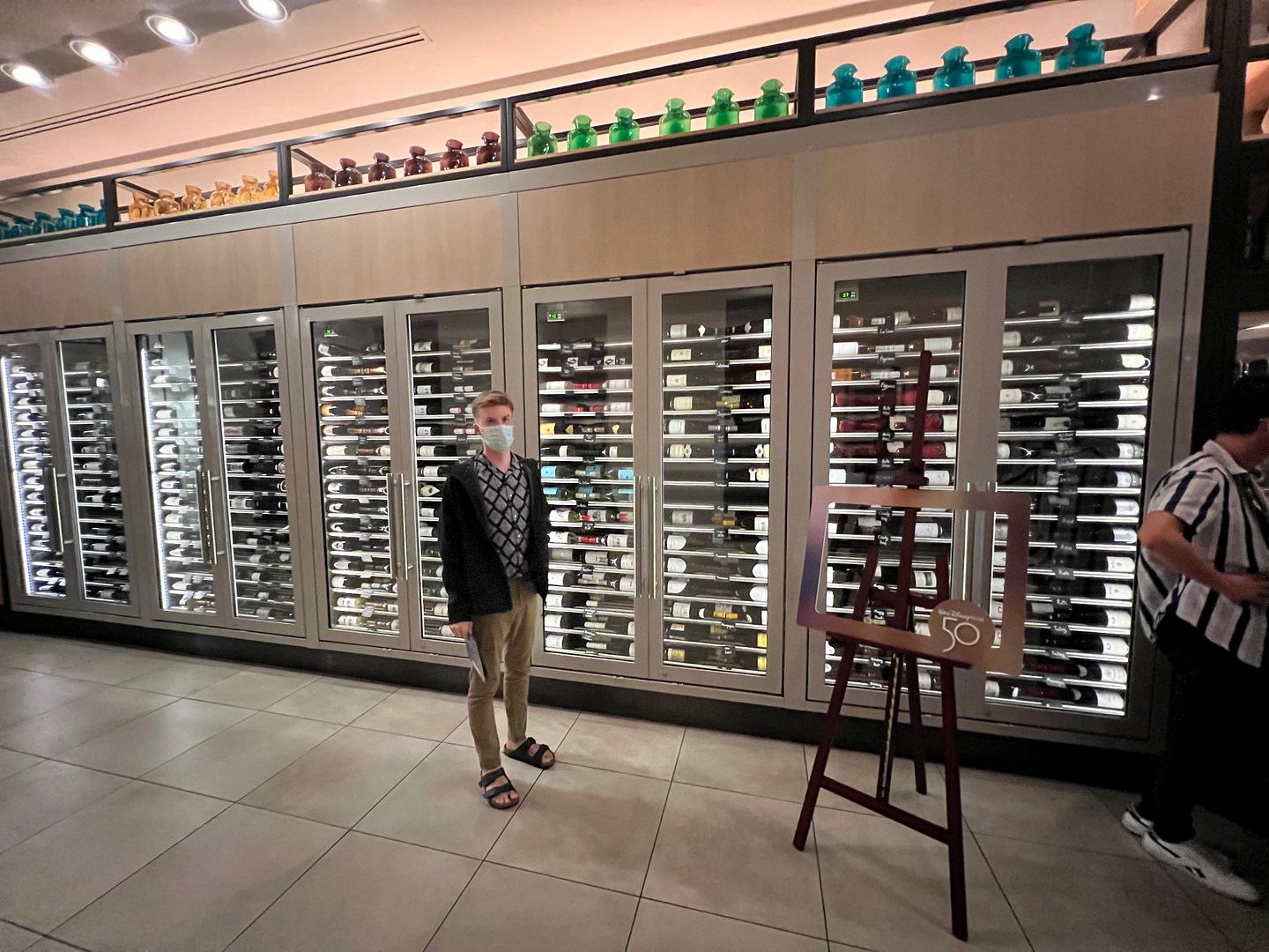 I love the “good vibe” that I feel from the the moment I get off the elevator and am greeted by a wall lined with storage cases full of wine…