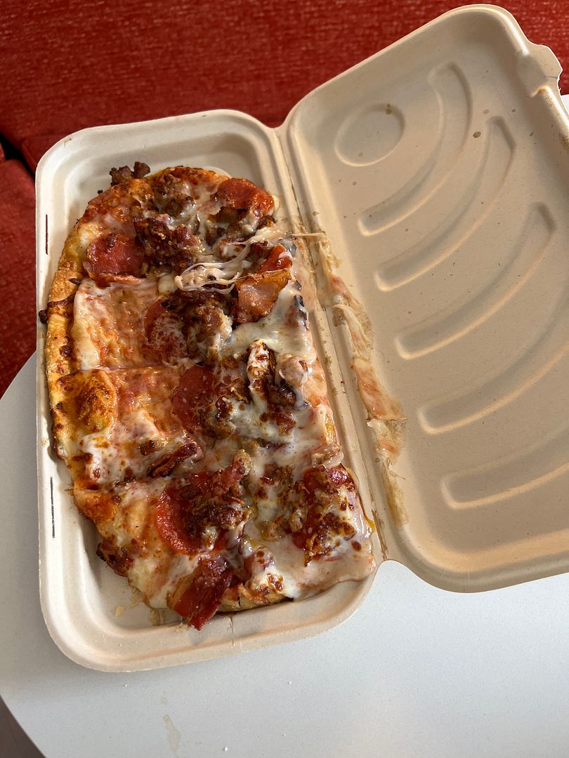 So anyway the Contempo’s flatbread had more cheese and a little thinner and crispier crust. But the negative is that it still wasn’t great. We gave it a rating of 2 1/2.