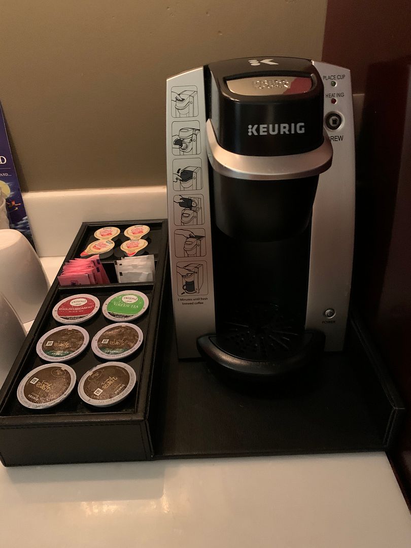 Even though we had refillable mugs, I took advantage of this in-room coffee maker on most mornings of our stay. The Contempo Cafe (the Contemporary’s quick service restaurant where your mugs can be filled) didn’t open until 7:00 a.m. and on three of our 5 mornings we were already at the parks by 7:00 (due to Extra, Extra Magic Hours being in effect through Nov. 2). Thankfully the Keurig conveniently and adequately fulfilled my need for early morning coffee.
