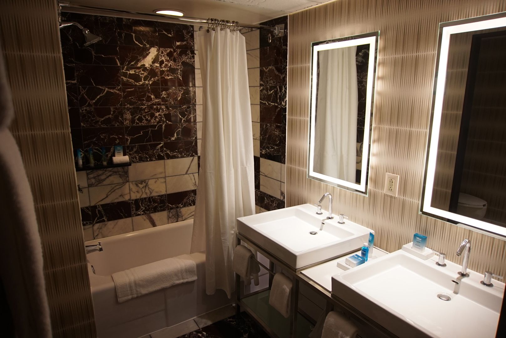 As for the rest of the bathroom,I have no complaints regarding the tub/shower. The shower head worked well, the water pressure and temperature were fine, and it was well-stocked with complimentary H20+ soaps…
