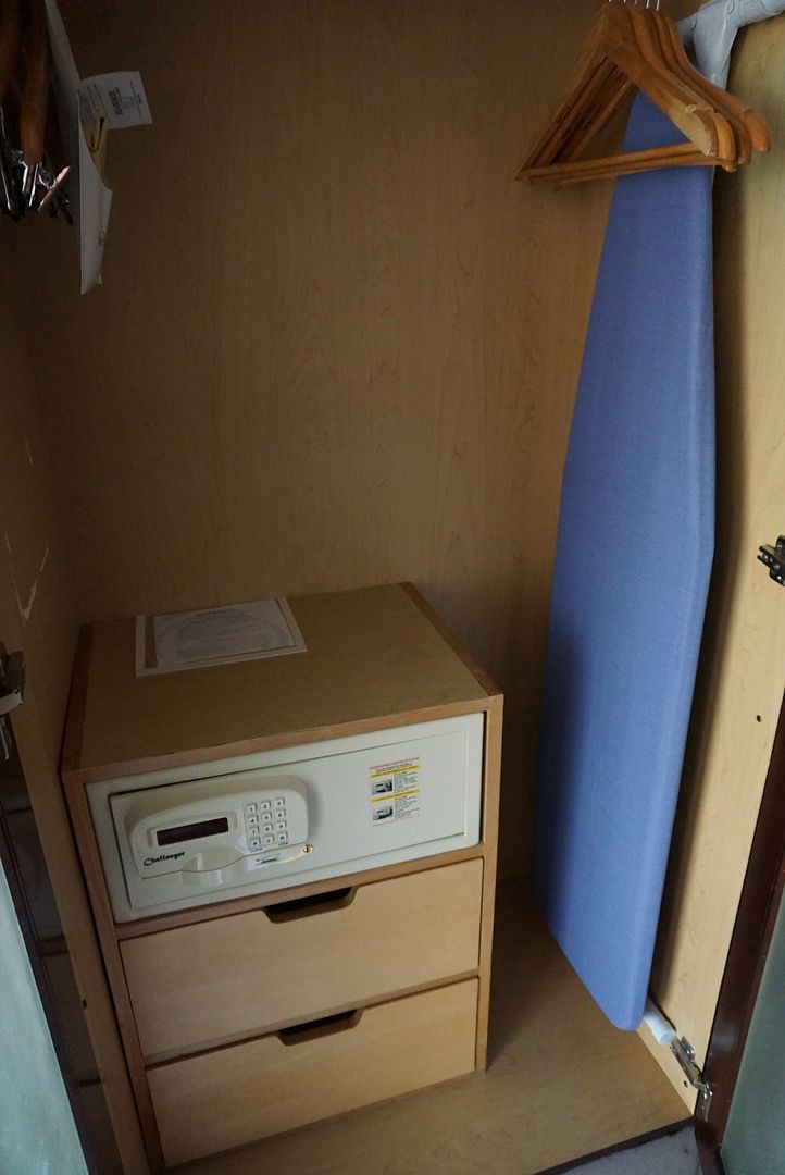 The safe cabinet, ironing board and iron took up most of the space of one these cabinets…