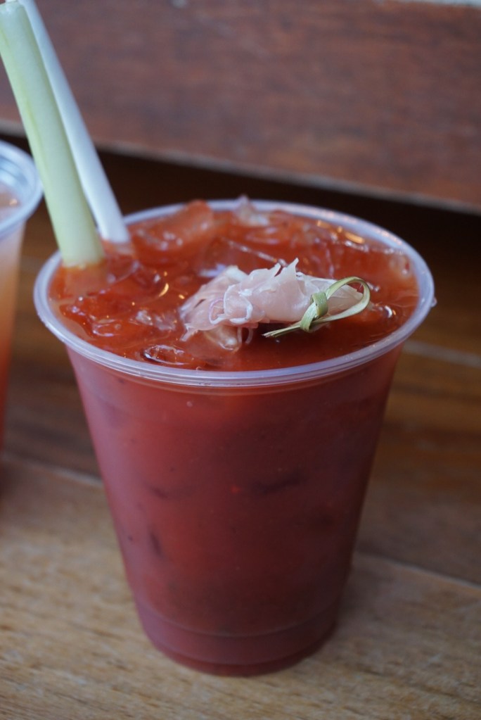 While it seemed to be pretty much a full bar, with wine, beer on draft and in bottles, and mixed drinks available, I thought their specialty cocktails sounded more interesting. However it was about 10:30 or 11:00 in the morning so I really wasn’t ready to drink a margarita or a mojito, lol. Hunter did though talk me into joining them for a Bloody Mary, and I’m so glad he did!