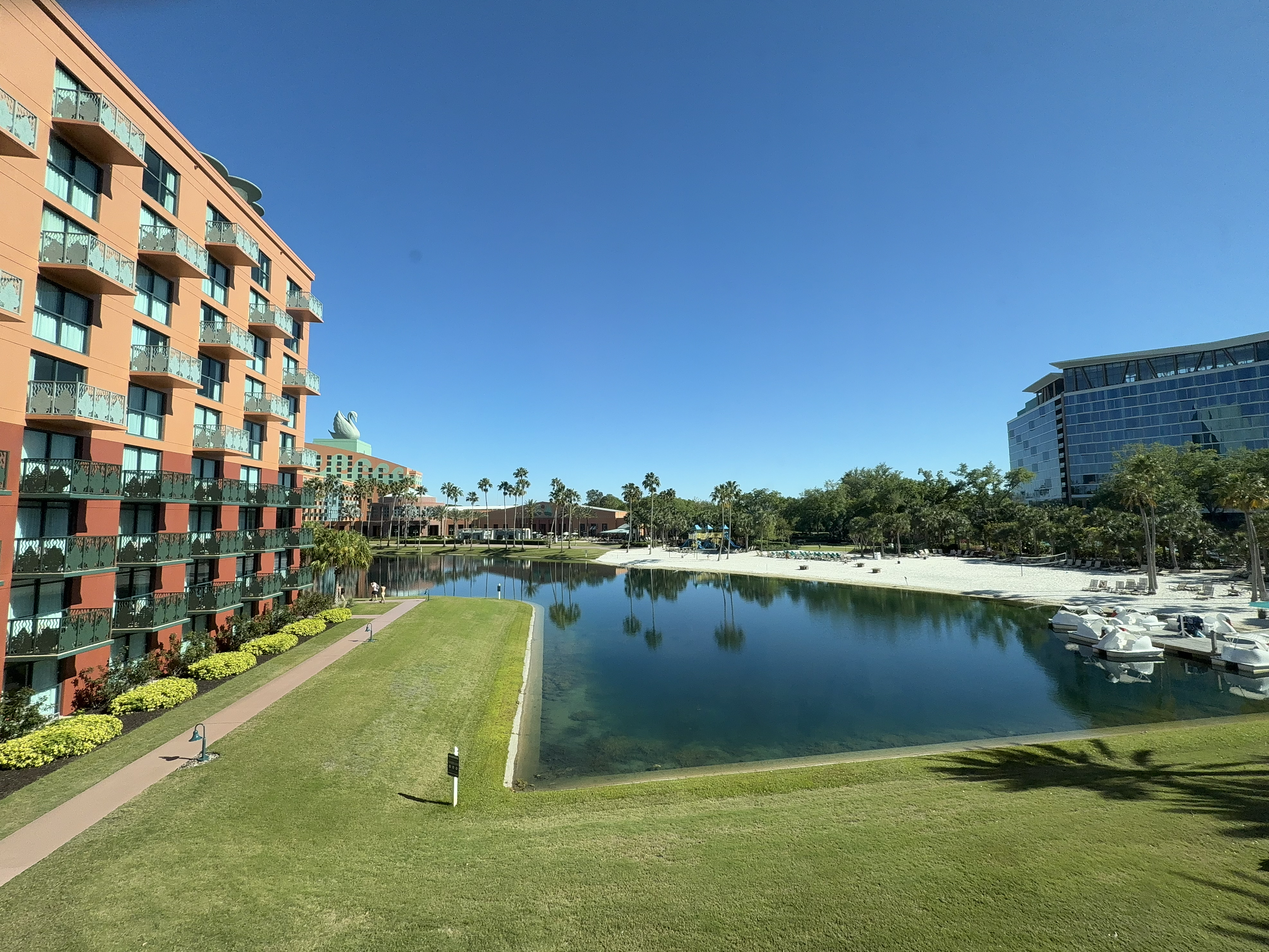 We could see water!!! Anytime you can see water at a Disney hotel (whether it be a pool, lake, pond, or oversized puddle, lol), it comes at a premium price. So I was thrilled with our “free” room view. Oh, but in case you were wondering, this room did not have a balcony. But that’s no big deal for us.