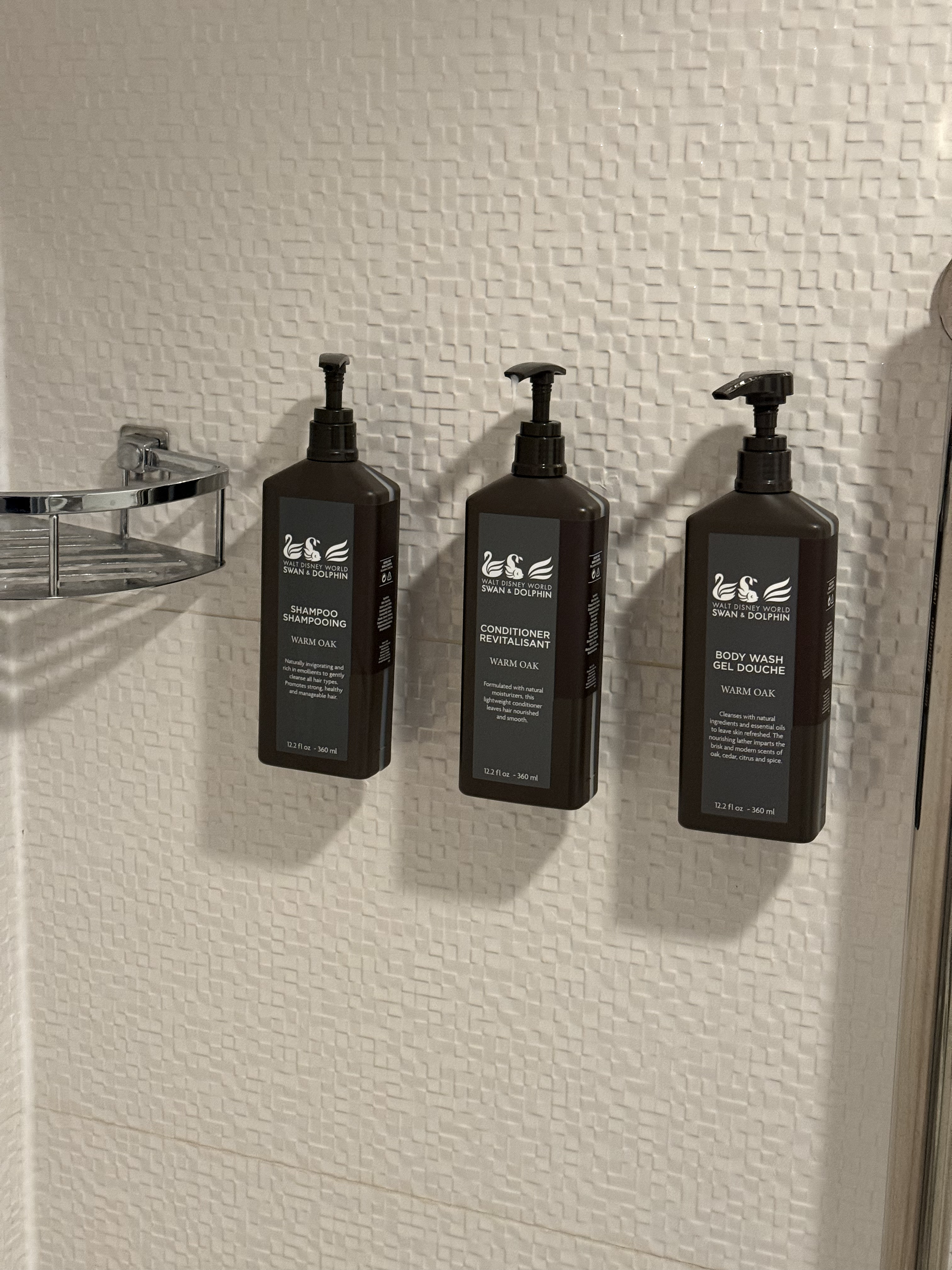 As you can see, they do not have individual size hand soap, lotions body wash, shampoo, etc. These complimentary toiletries were all in dispensers, located either in the shower…
