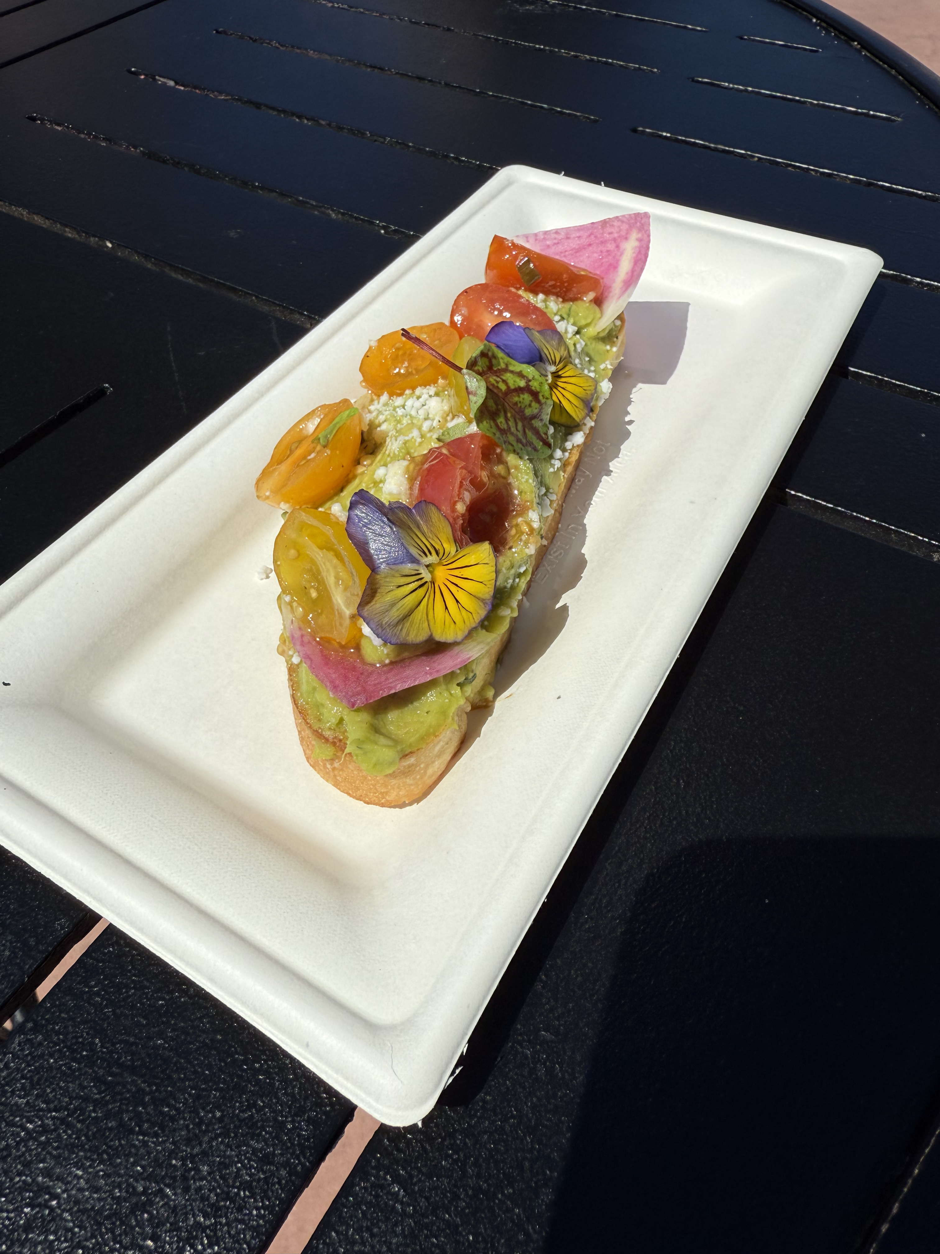 Avocado Toast with Marinated Tomatoes and Plant-based Cheese Crumbles on Toasted Ciabatta – $6.25