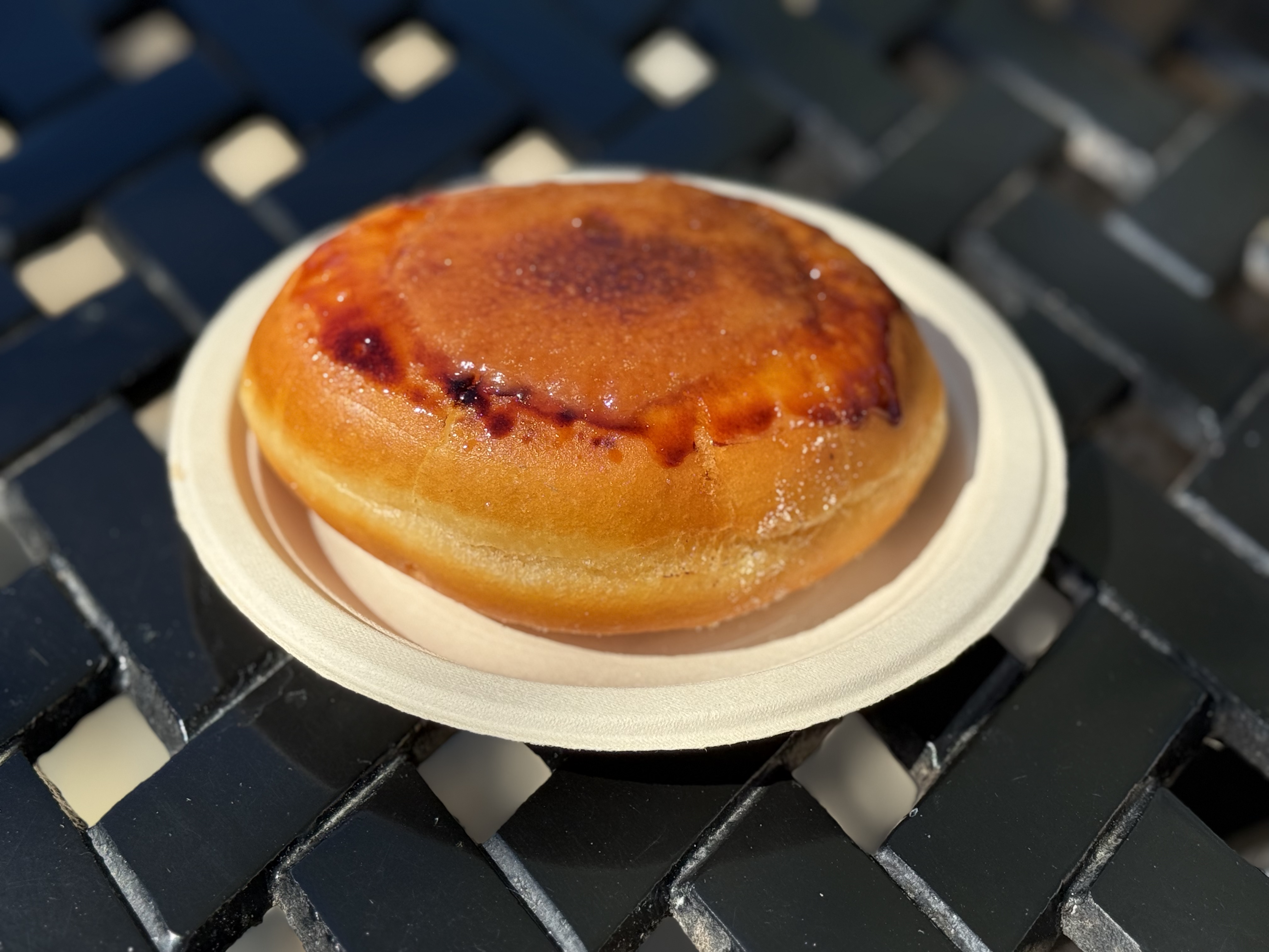 Beignet Caramelise, Fourre Creme Vanille, Glace au Caramel Fleur de Sel: Carmelized Beignet filled with Vanilla Cream and glazed with Caramel Fleur de Sel – $6.95