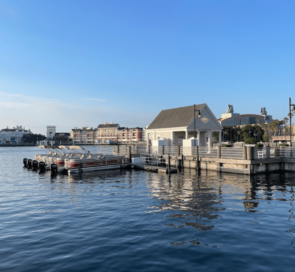 The boats then took turns leaving the dock and for the next 45 minutes we were cruising around Crescent Lake, going down to Hollywood Studios before making our way back to Epcot. By 8:45 our boat had docked near the International Gateway, below the bridge that lies between the United Kingdom and France in World Showcase.