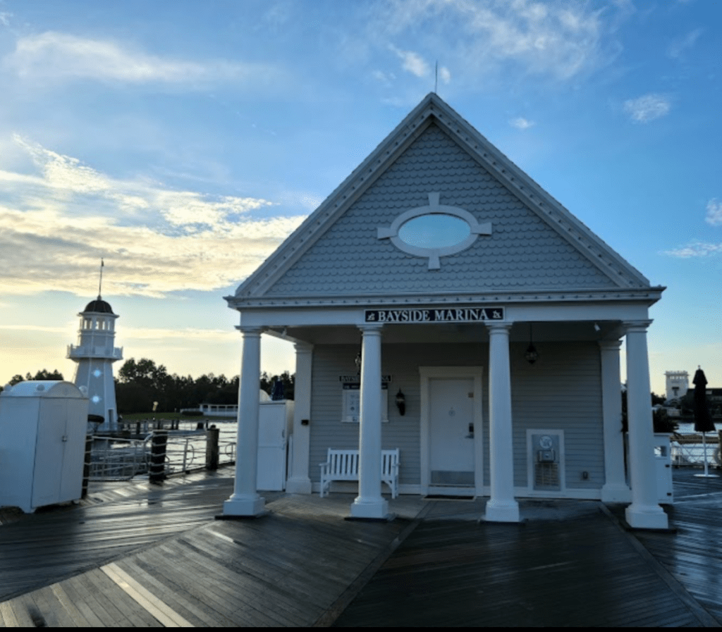 On the night of the cruise, I was told to check in by 7:45 p.m. (one hour and 15 minutes before the start of the Epcot fireworks show) at the Bayside Marina office located near the boat dock/lighthouse at the Yacht Club.