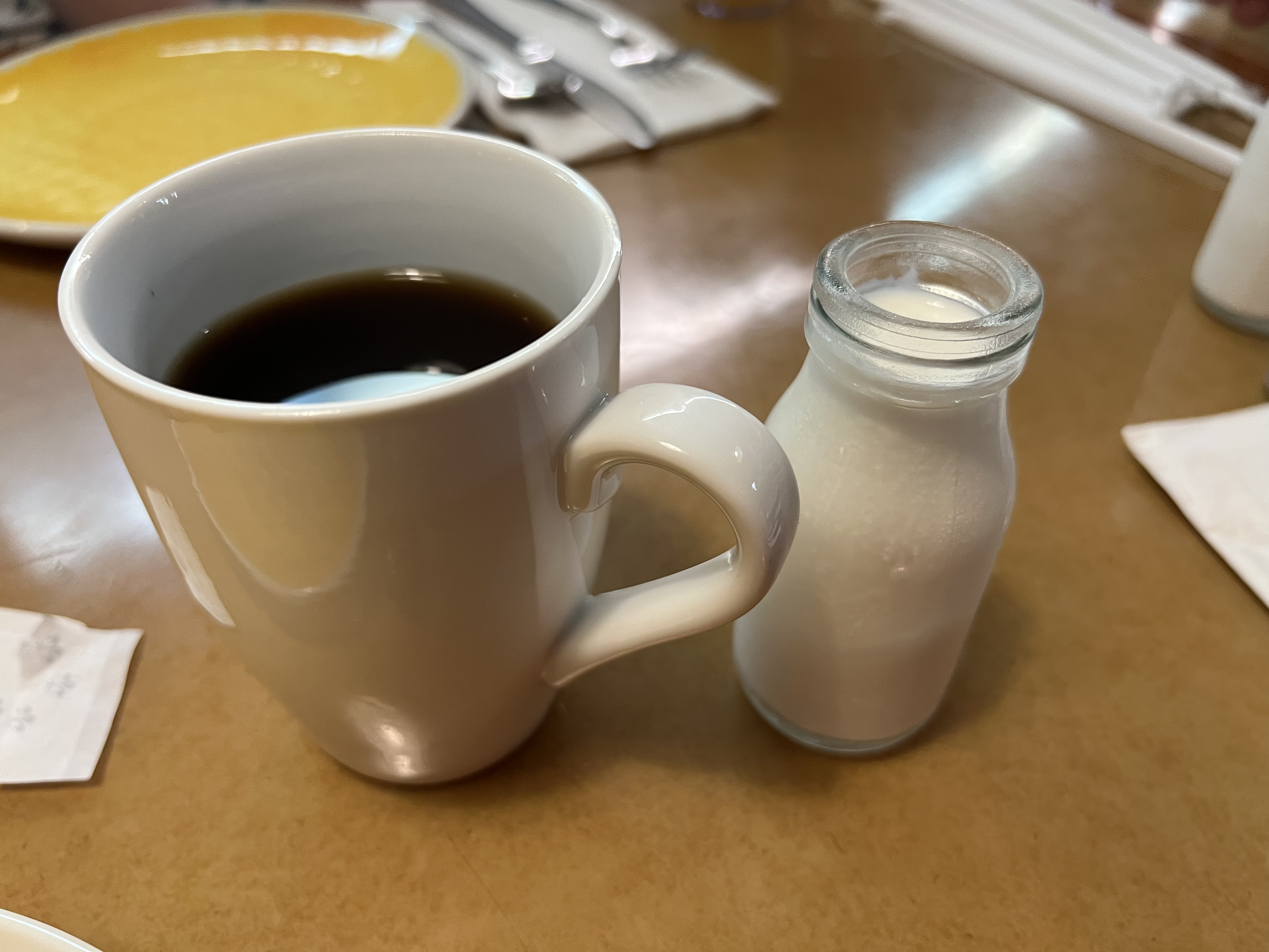 Also, I had to take a photo of the cute bottle that the cream for my coffee was served in…