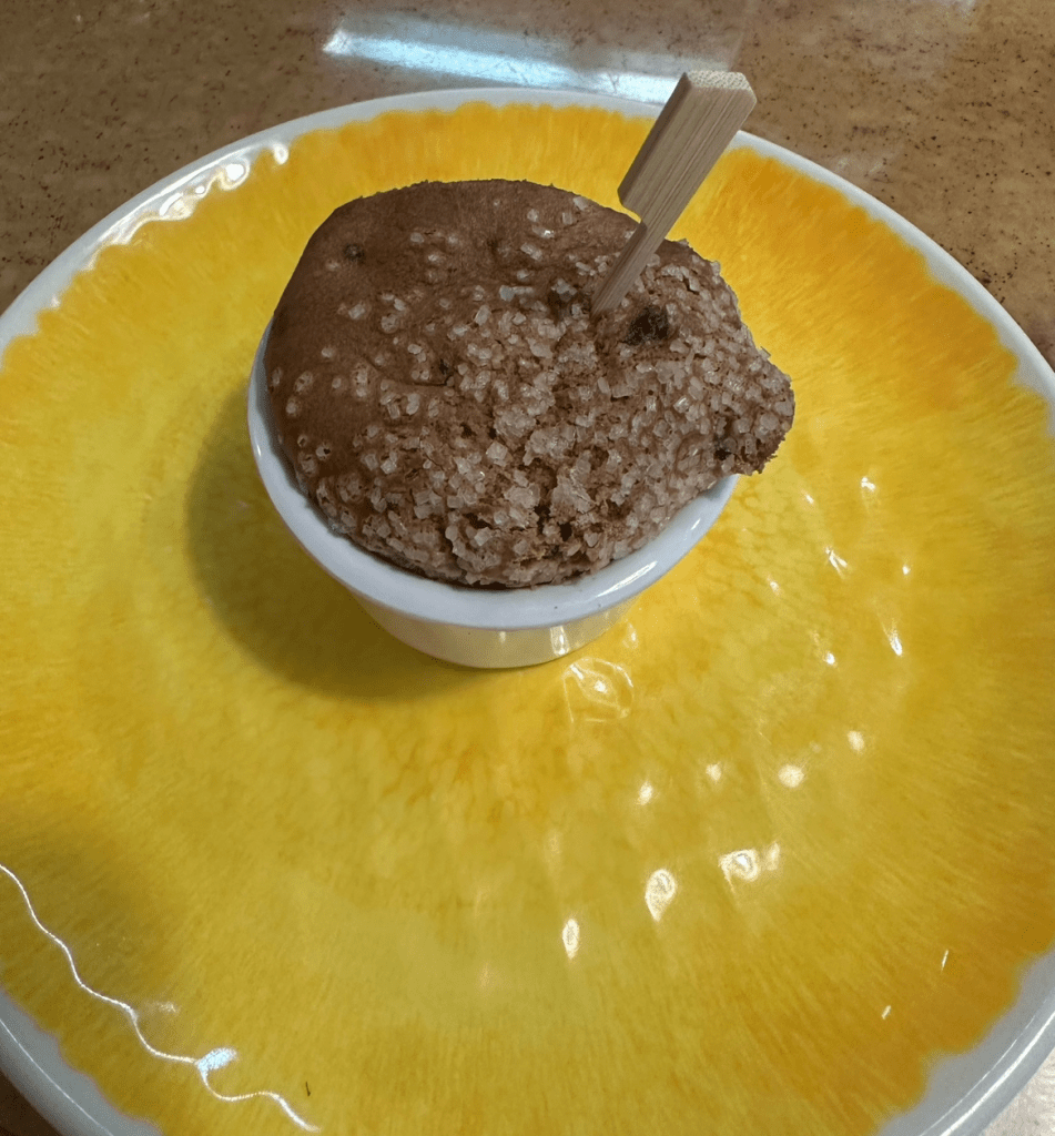 I think we actually may have gotten two loaves of bread for our group. The ratings on the Cinnamon Breakfast Loaf were mostly 3’s but I gave it a 4. However, I must admit that it was not nearly as good as the Chip & Dale Sticky Buns that they used to serve here for breakfast. Those were heavenly!
