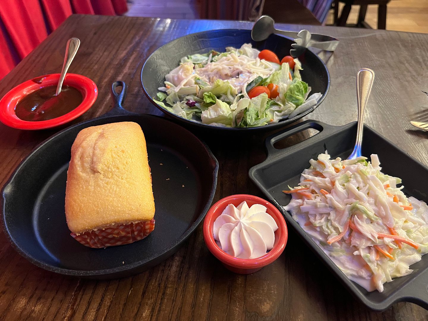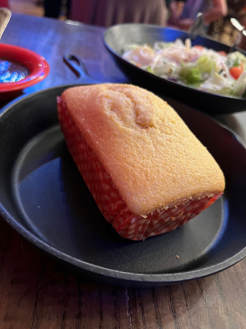 This was excellent! It tasted very fresh and was moist and sweet. The whipped honey butter was a perfect addition. This was everything you want in a cornbread and a great start to our meal. We gave this a perfect 5 rating.