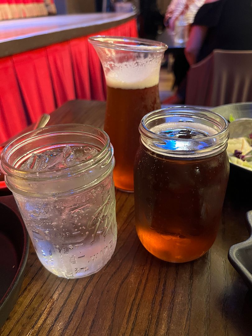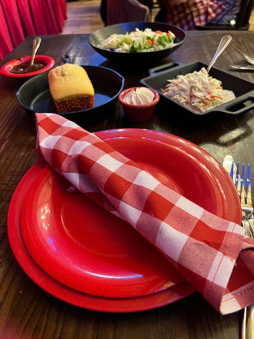 My husband chose Yuengling, as it is a beer that is not available for purchase in our home state. Our server brought him both a glass jar of beer plus a full carafe so he was set. I don’t drink beer and don’t care for either Chardonnay or Merlot. I considered the sangria but remembered that I didn’t like the sangria that I had here last time. I probably would have ordered the sweet tea had I noticed that it was available but I didn’t so I ended up just getting a Sprite. Our server brought me only one glass (jar) of Sprite, I didn’t get a carafe like my husband received, so either she liked him better or thought he looked thirstier. Haha. Anyway, I did request and received a refill later in our two hour meal.