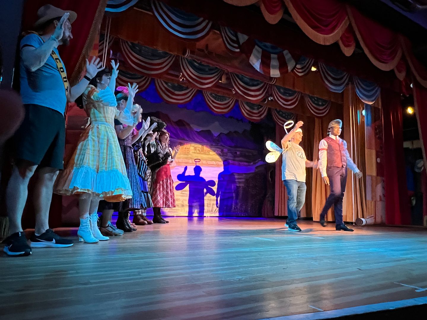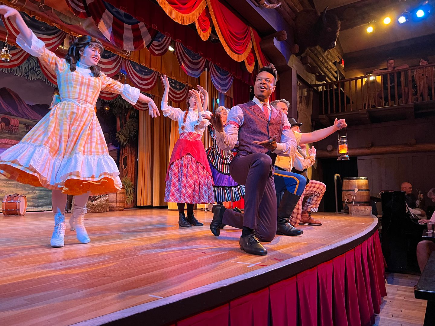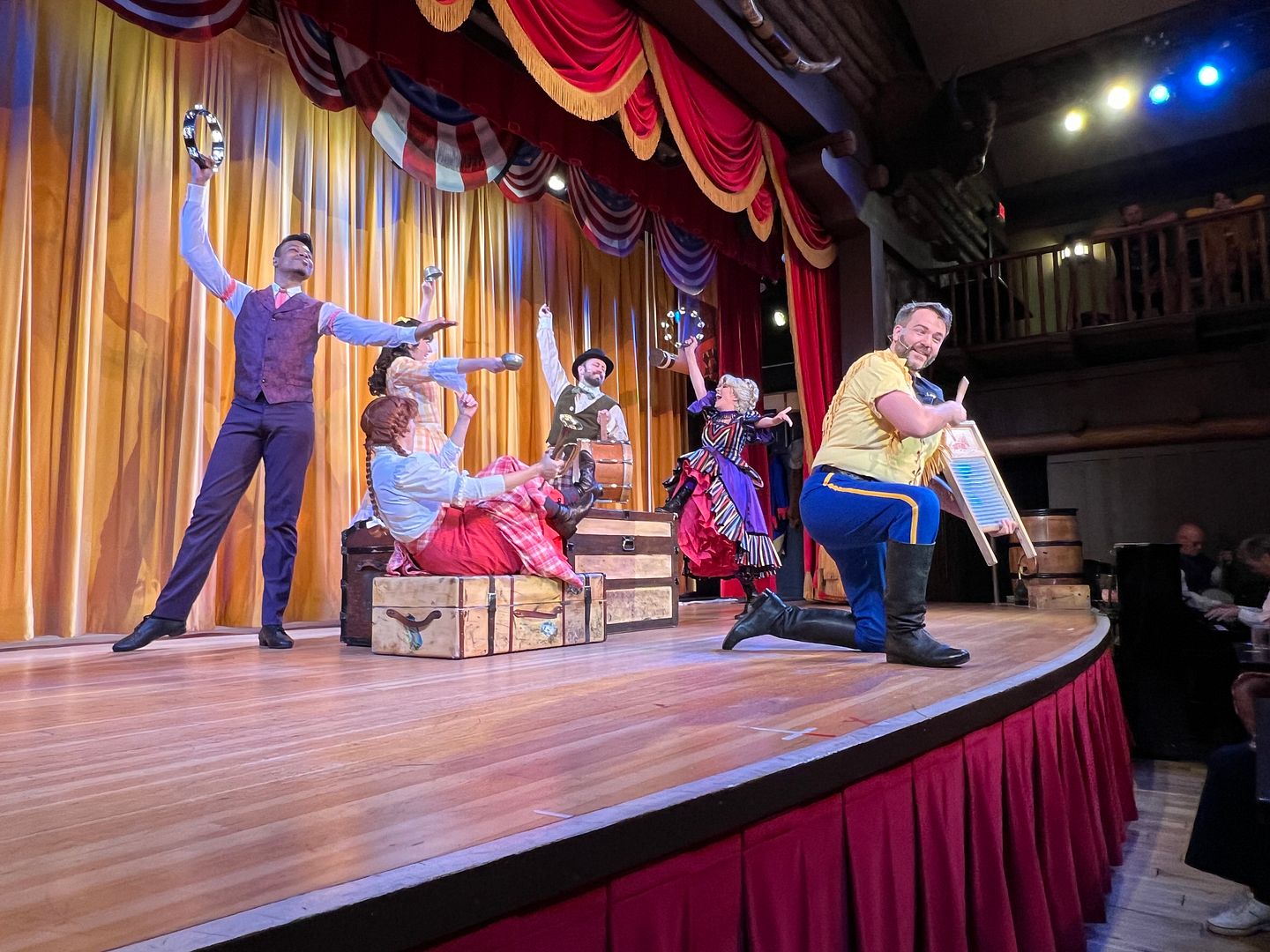 The show was fun and the performers interacted well with the audience. They had us waving our napkins and playing our washboards…