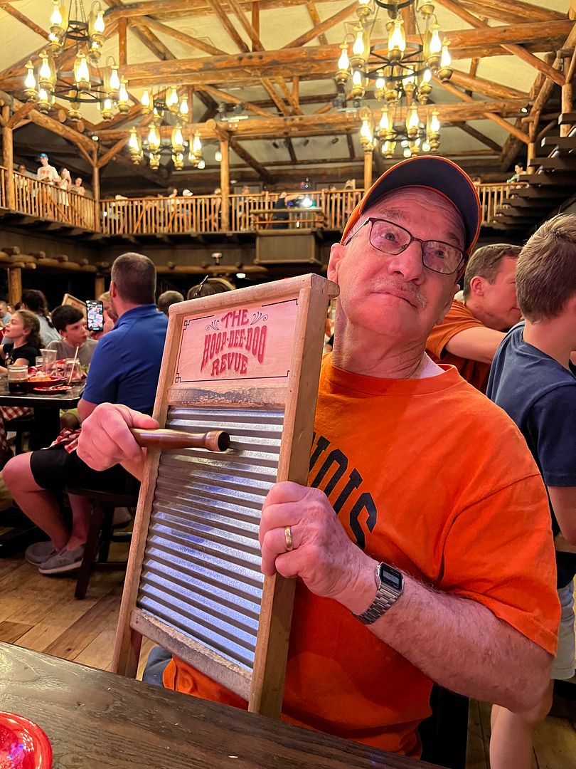 Overall we really enjoyed ourselves at the Hoop-Dee-Doo dinner show. The show seemed to be about the same as it was when I last saw it 7 years ago but I still found it to be entertaining. The food was better than I’d remembered it to be, with the highlights being the cornbread, the macaroni & cheese, and the fried chicken. All of these were excellent and received ratings of 5 from both of us. That’s pretty impressive for food served “en masse” like this. And another “thumbs up” for the price. I thought $74 (including tax and tip) was a very reasonable price to pay for 2 hours that included a very large amount of food and unlimited beverages (including alcoholic options) plus a live show. So congratulations to Hoop-Dee-Doo for 50 years of success. You can count my husband and me among your millions of satisfied guests. Bravo!