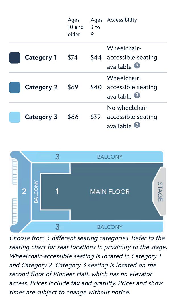 And so on the first day I could, on Jan. 29th (exactly 60 days prior to the start of our trip), I booked my reservation for the first show (4:00 p.m.) on Saturday, March 30 and chose Category 1 Main Floor seating.