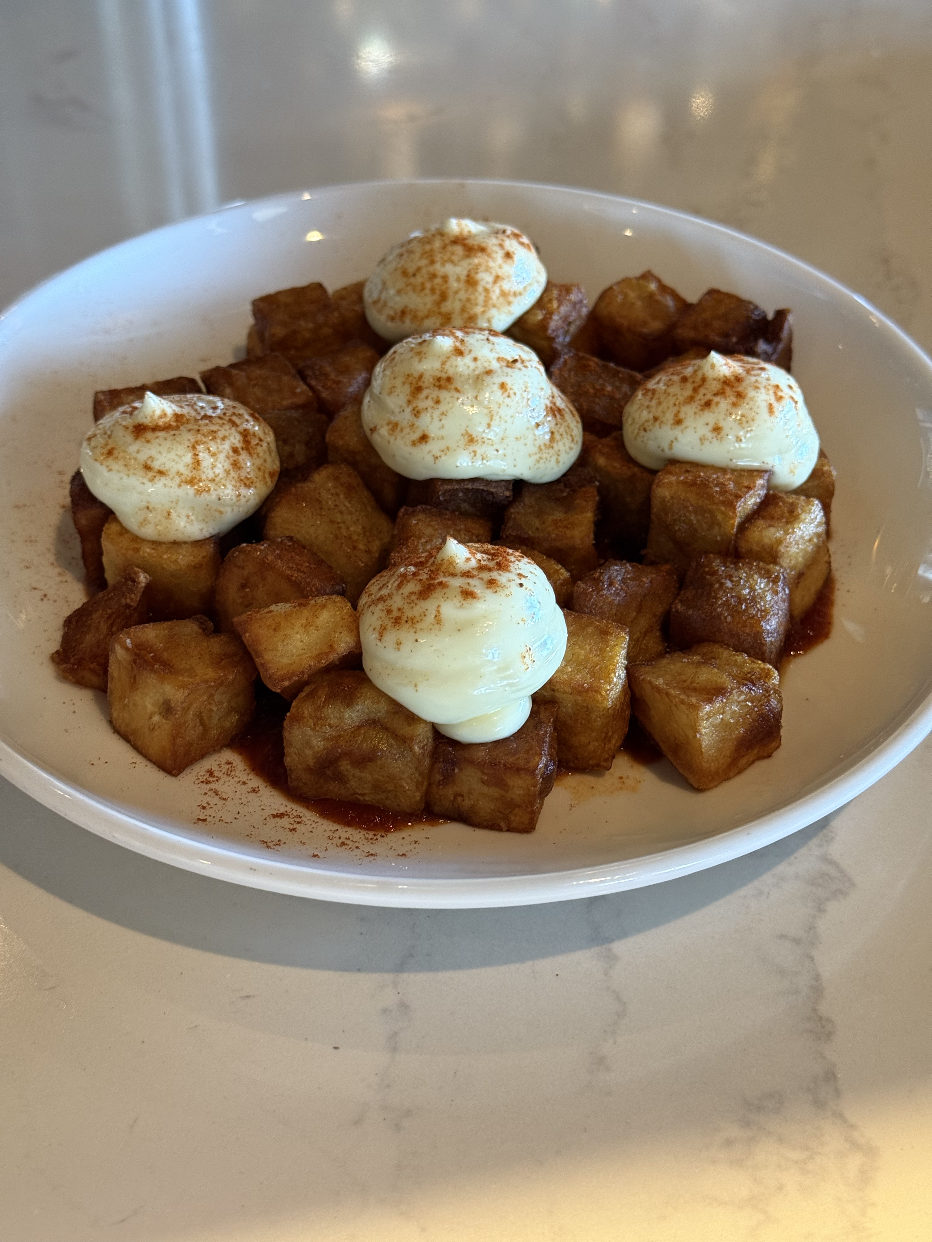 Patatas Bravas – A Jaleo favorite: Fried Potatoes with Spicy Tomato Sauce and Aioli – $5.00