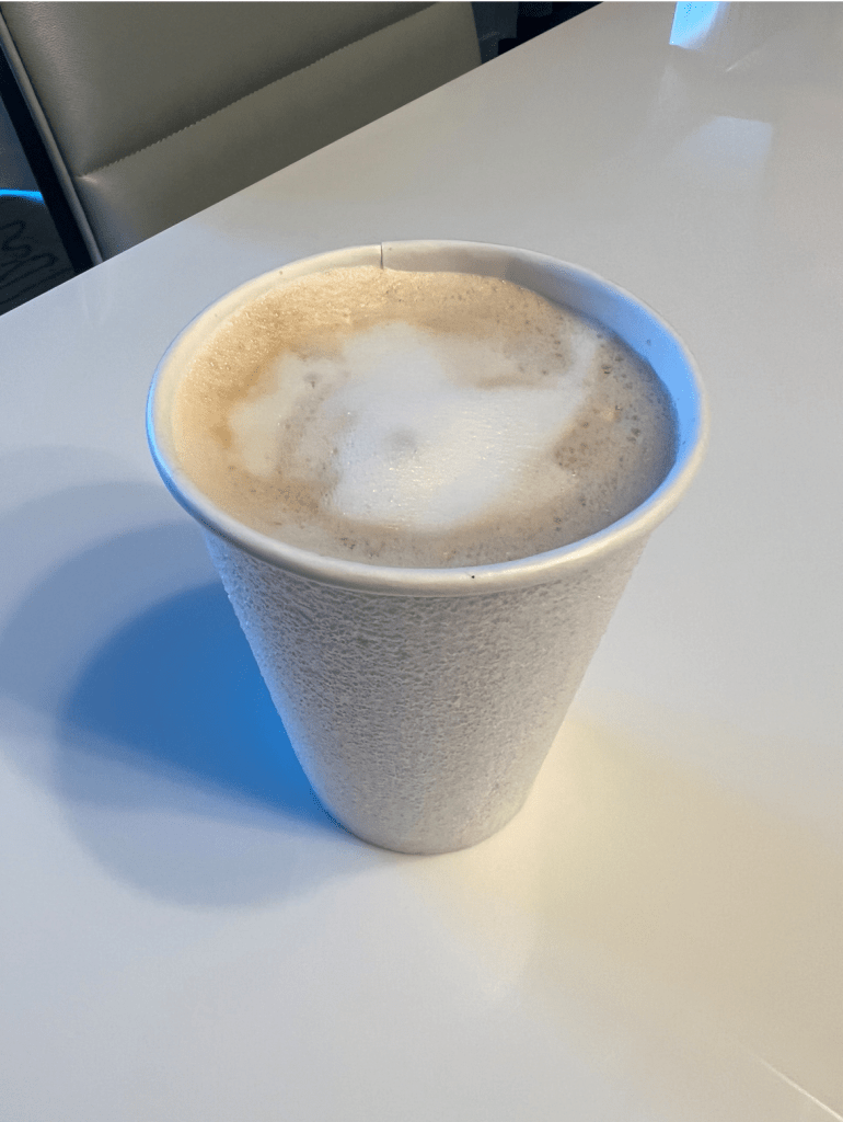 Our beverages were a regular Joffrey’s coffee ($4.29), a Hot Chocolate ($4.29) and I got a Caramel Latte…