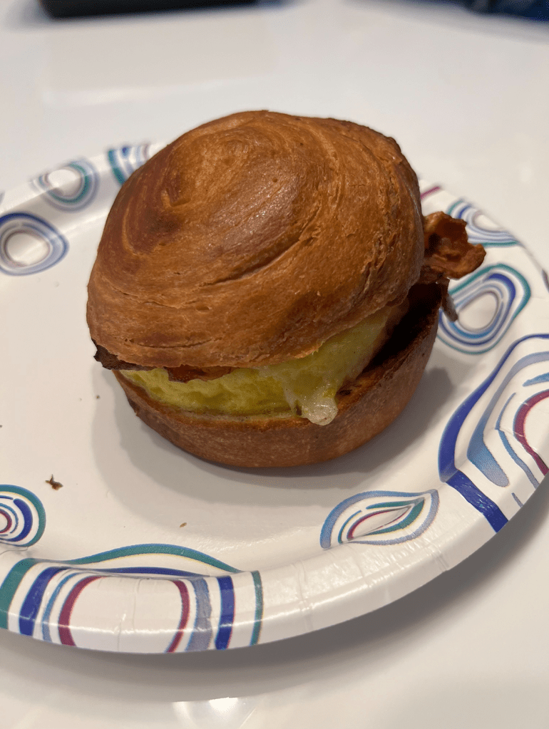Being served on a toasted croissant roll made this a little more unique than the typical breakfast sandwich served on a bagel or English muffin. Other than that though it was nothing special, so it received a rating 3 1/2.