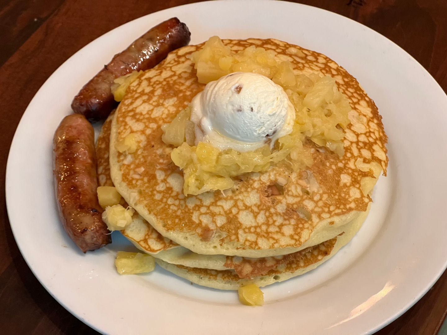 Of note is that Kona’s breakfast menu has shrunk over the years, with fewer options available than what they once offered. A few of the once popular items that were missing (and are still missing from the current Feb. 2024 menu) are the Samoan (which was a Polynesian version of eggs benedict) and the Big Kahuna (which was a combo plate that included scrambled eggs, potatoes, french toast, pancakes, sausage, bacon and ham). However, the Big Kahuna was offered to us as their “Special of the Day”.