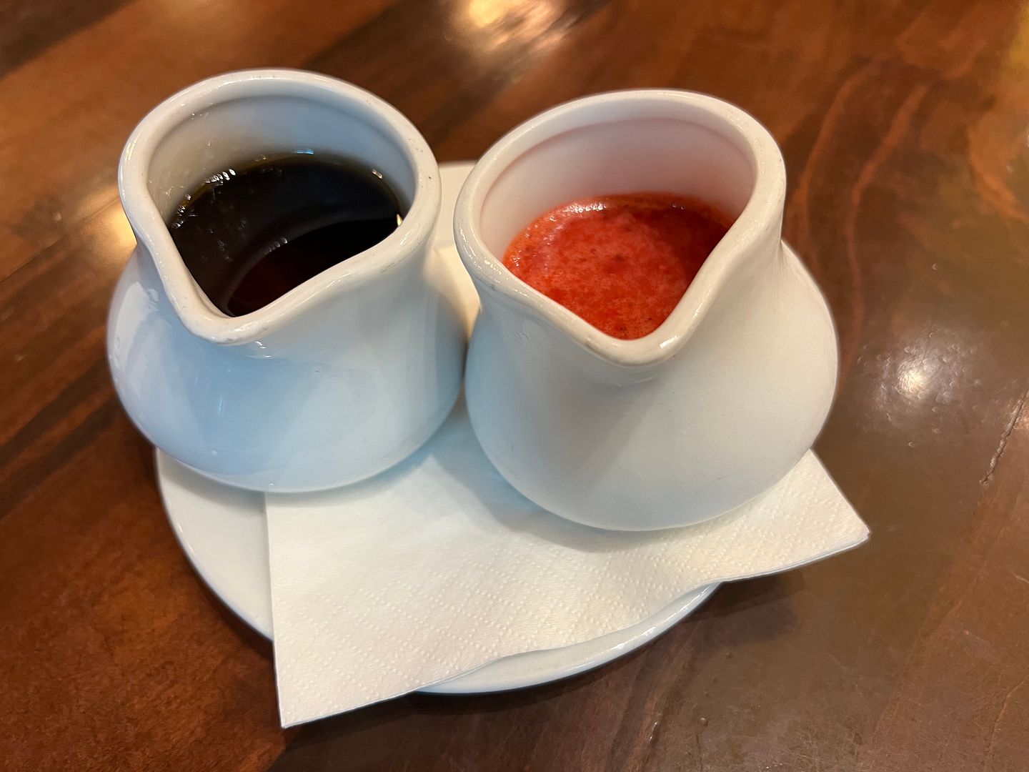 Andrew has had the Tonga Toast before but this time he said it wasn’t as good as he’d remembered. The outside was hard and overly crisp. He said that it was helped by the Strawberry Compote that came with it though…