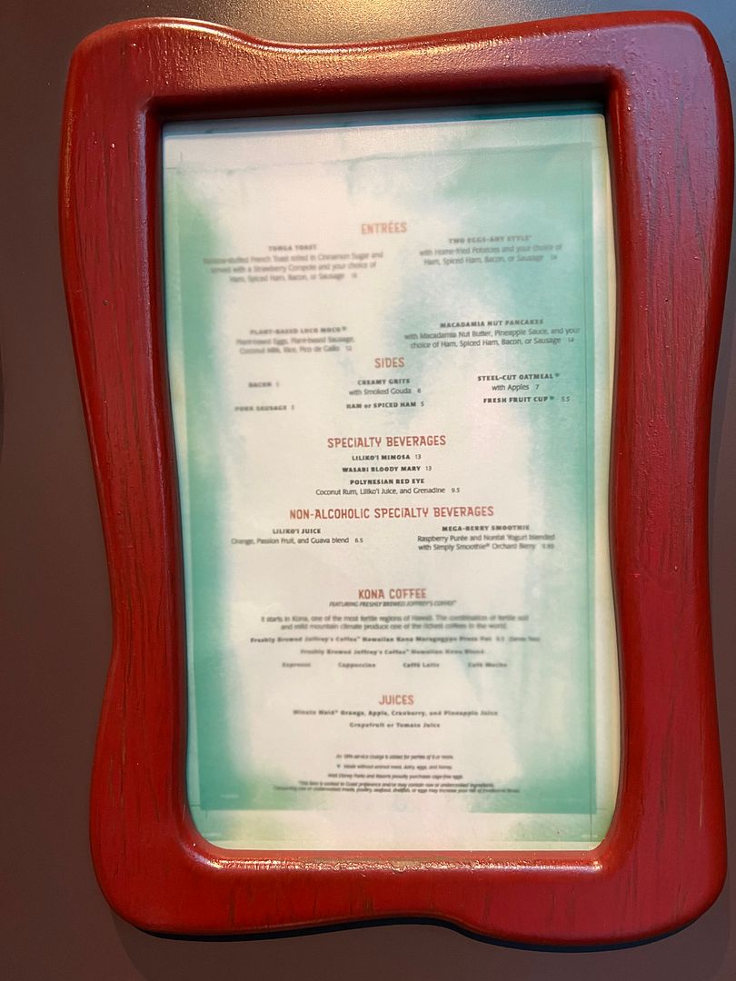 So this 11th breakfast at Kona Cafe was a success for me but not so much for Andrew. My first dining reservation on our upcoming trip is for breakfast at Kona Cafe with my husband. I’m hoping Kona Breakfast #12 does not disappoint!